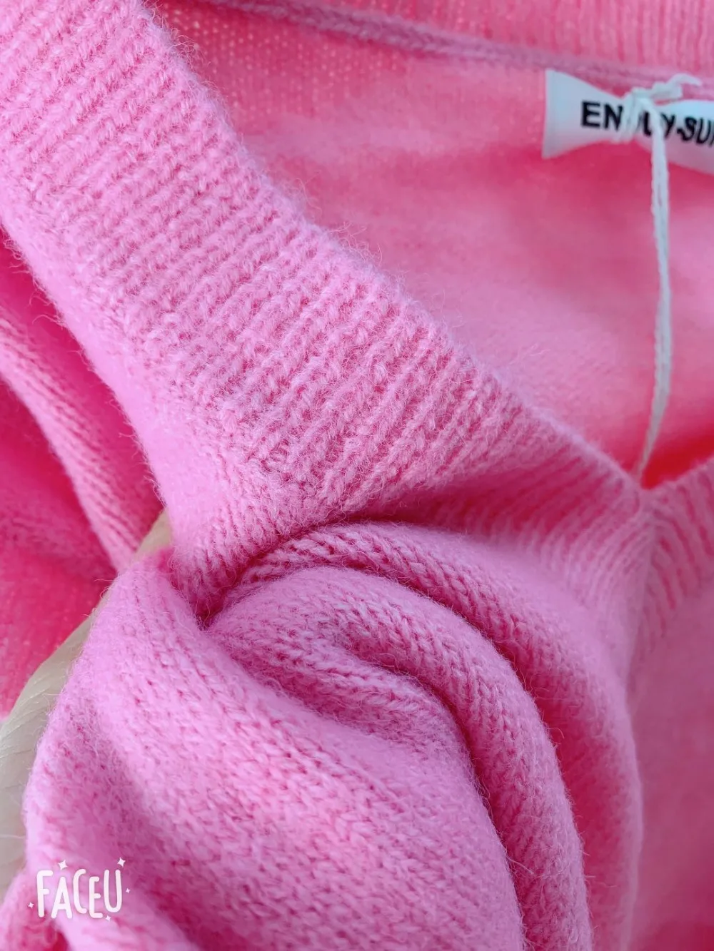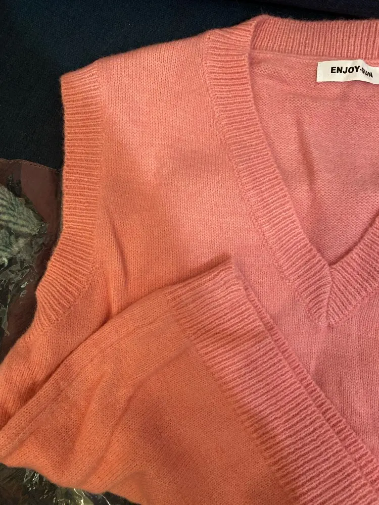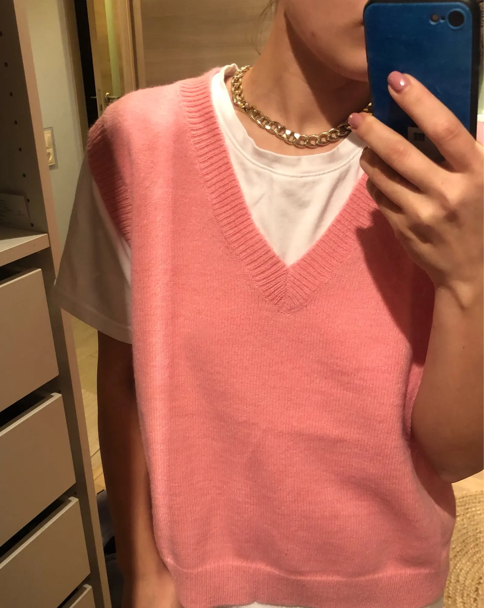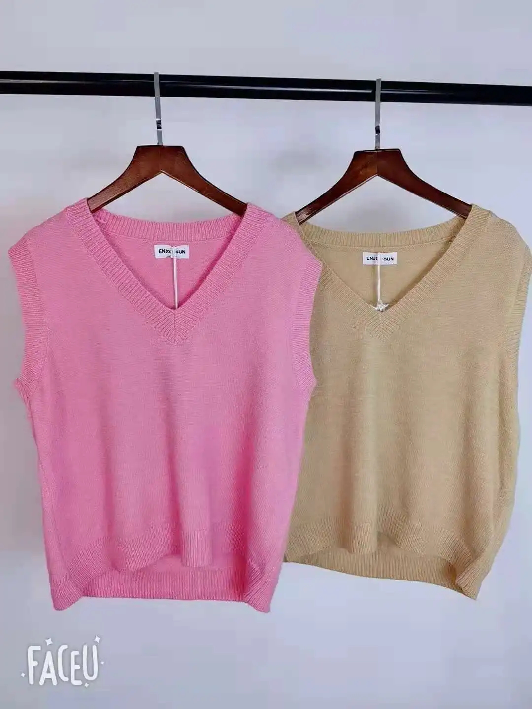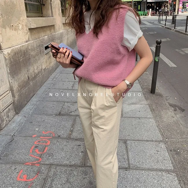 Женский трикотажный пуловер, розовый свитер без рукавов, с V-образным вырезом, Осень-зима