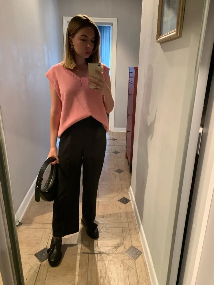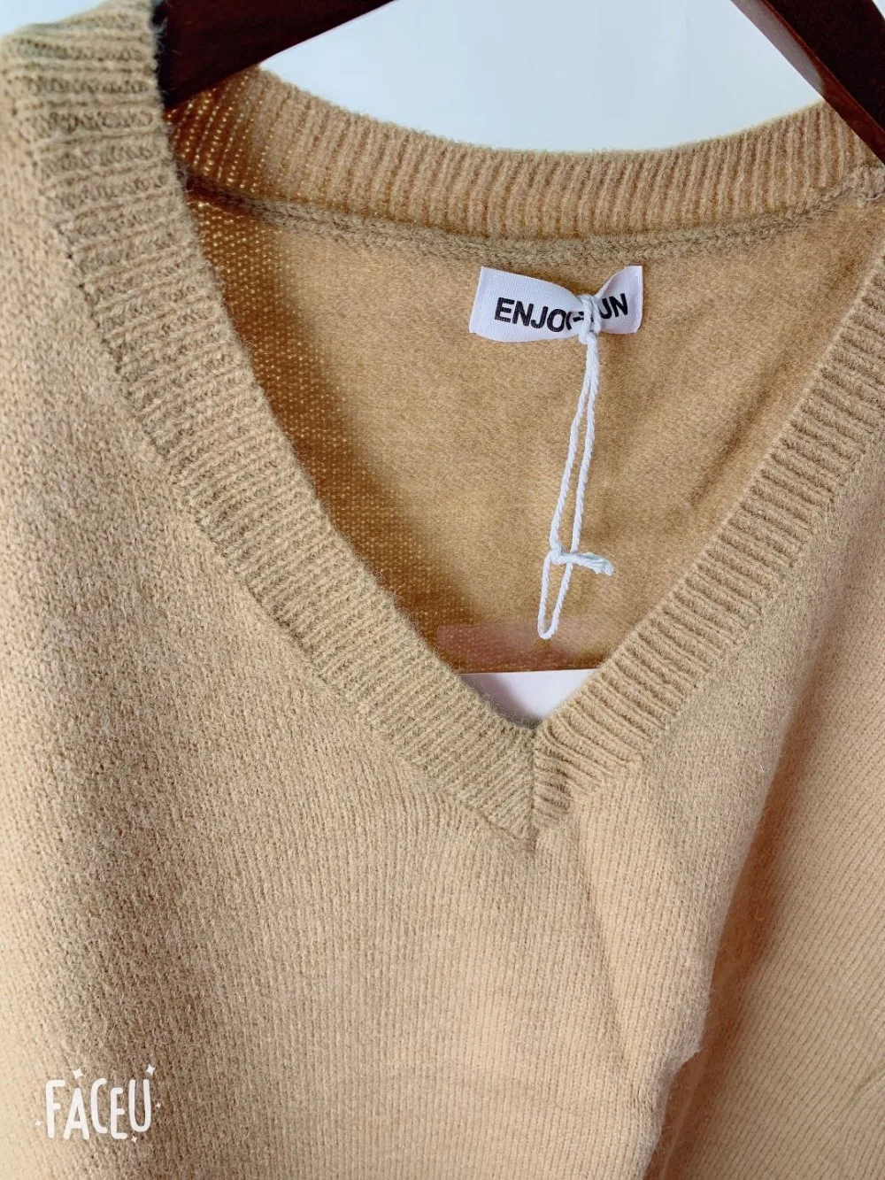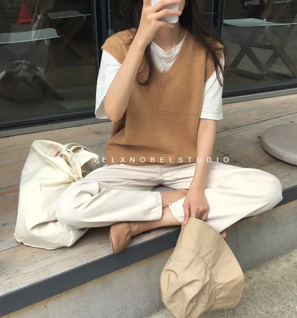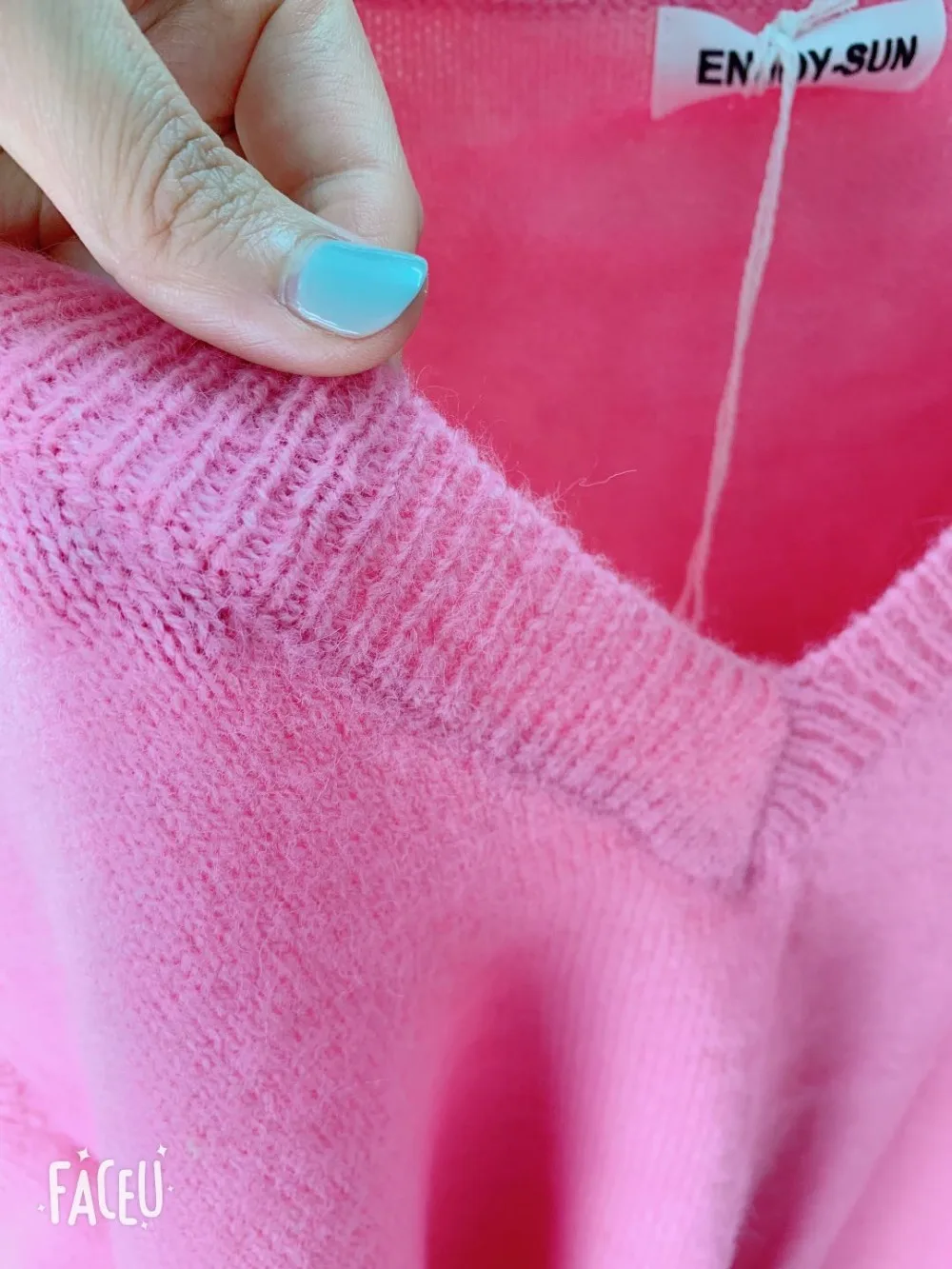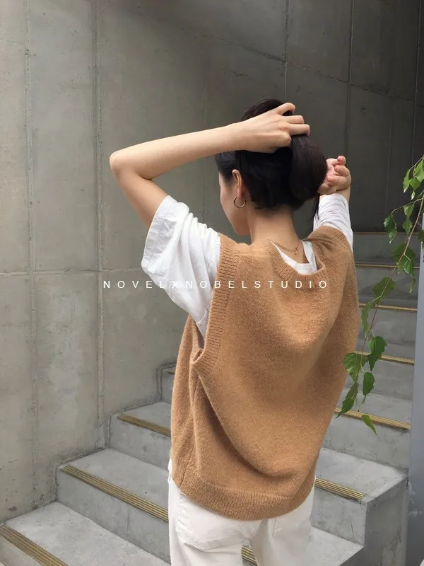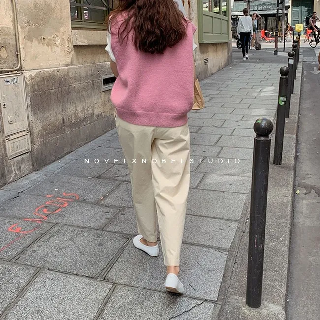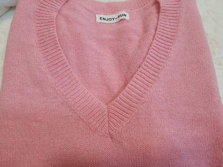 Женский трикотажный пуловер, розовый свитер без рукавов, с V-образным вырезом, Осень-зима