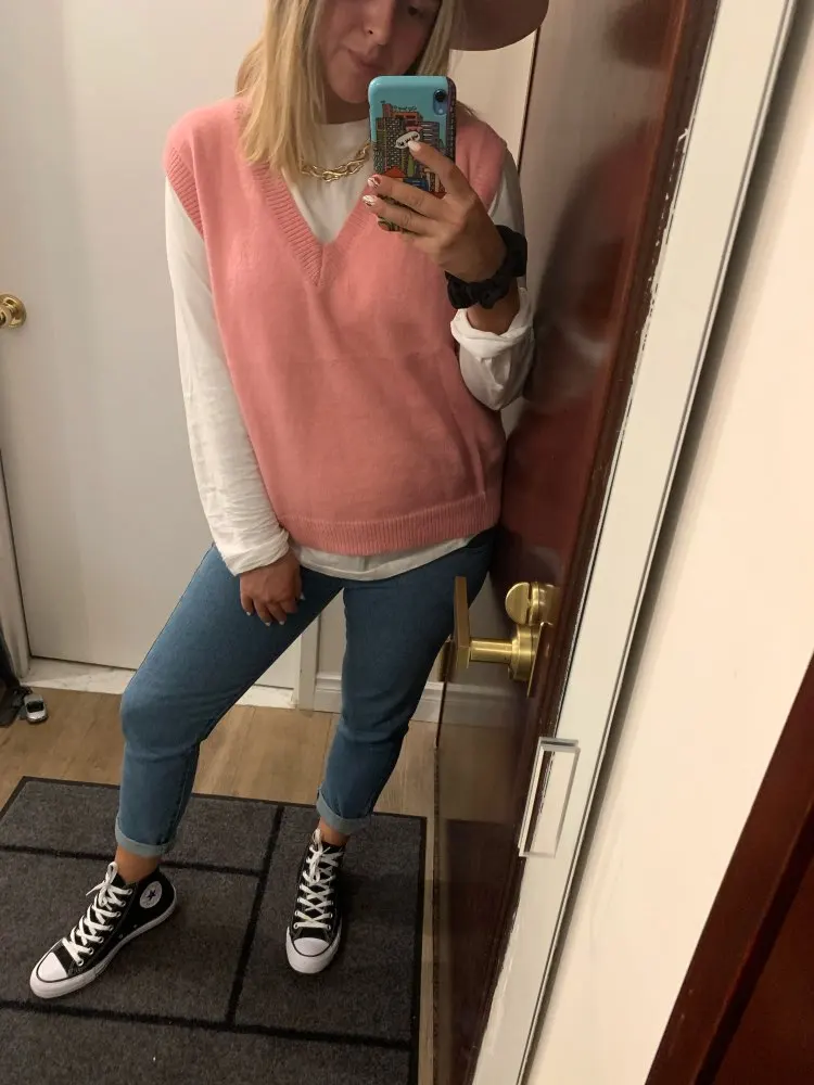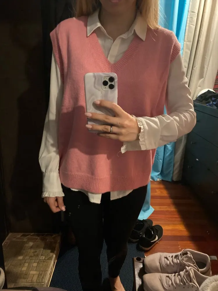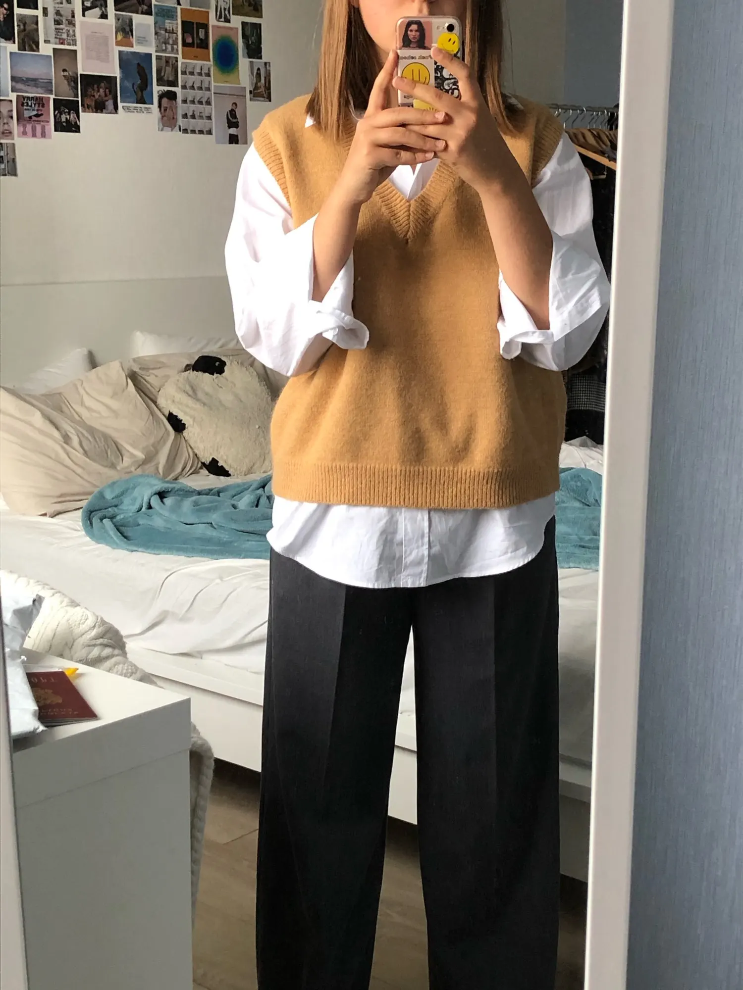 Хорошая жилетка за свою цену. На размер S сидит как небольшой оверсайз. Хотелось бы, чтобы была немножко длиннее, но в целом советую