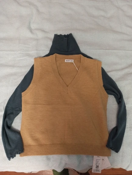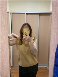 Прекрасная тёплая жилетка. Похожа на вещи из магазина Беннетон. Тоже сделана из немного колючей, тёплой шерсти. Подошла на грудь объемом 103 см, не в облипку. На рост 165 см блузка немного ниже пояса. Была очень быстрая доставка, где-то за неделю в пункт выдачи пятерочки. К покупке рекомендую