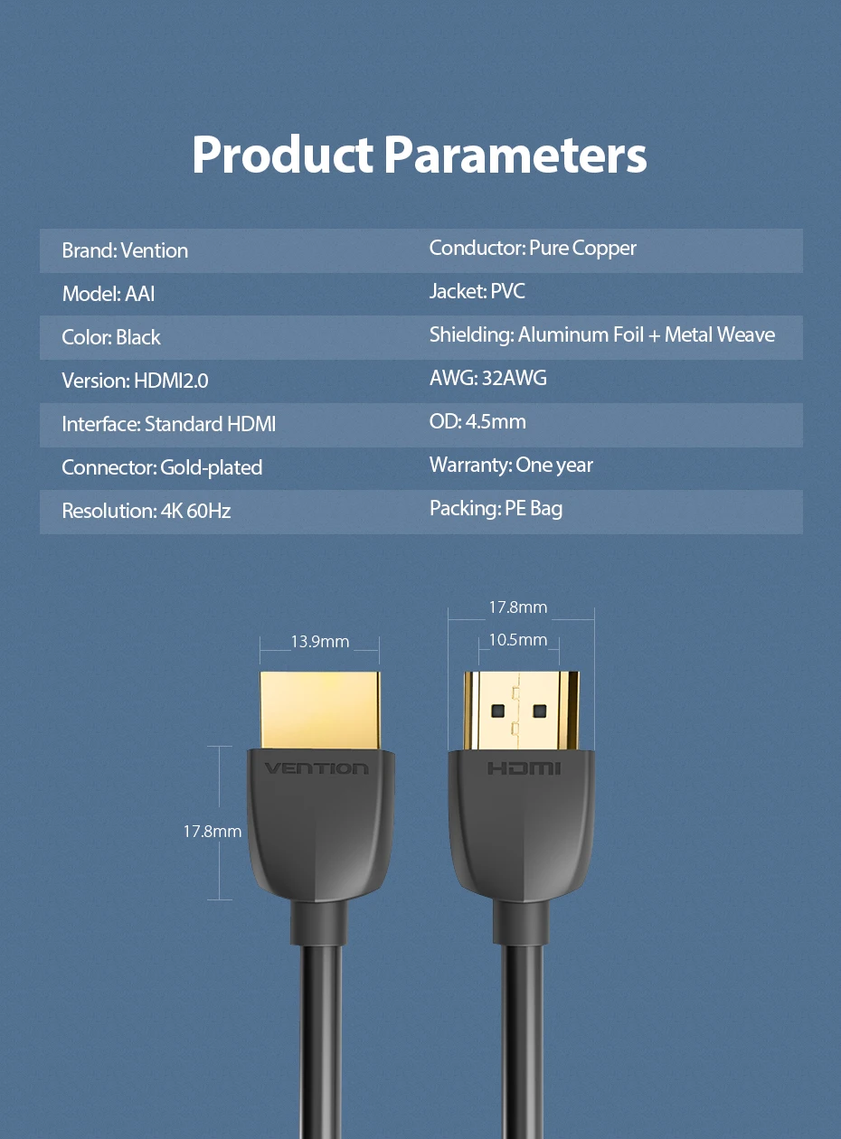 Переходник Vention HDMI в HDMI, удлинитель HDMI 2,0, 4 к, 60 Гц, для PS4Apple TV, сплиттер, переключатель, 3 м