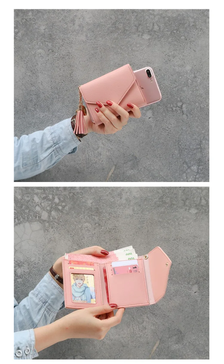 Оптовая цена! Женский кошелек, простой короткий кошелек с кисточками, отделением для монет и карт, с несколькими отделениями для карт, женский кошелек