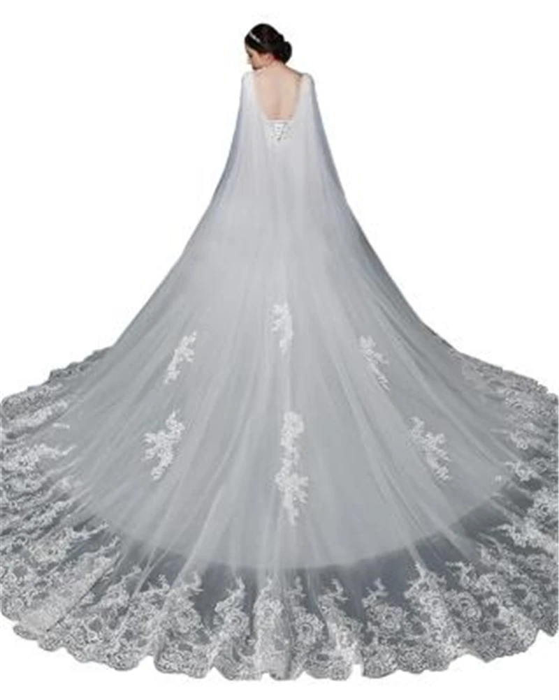 Свадебная накидка цвета слоновой кости, длинная кружевная Свадебная накидка на плечо, венецианская Фата, Свадебный накидка длиной 3, 4 метра