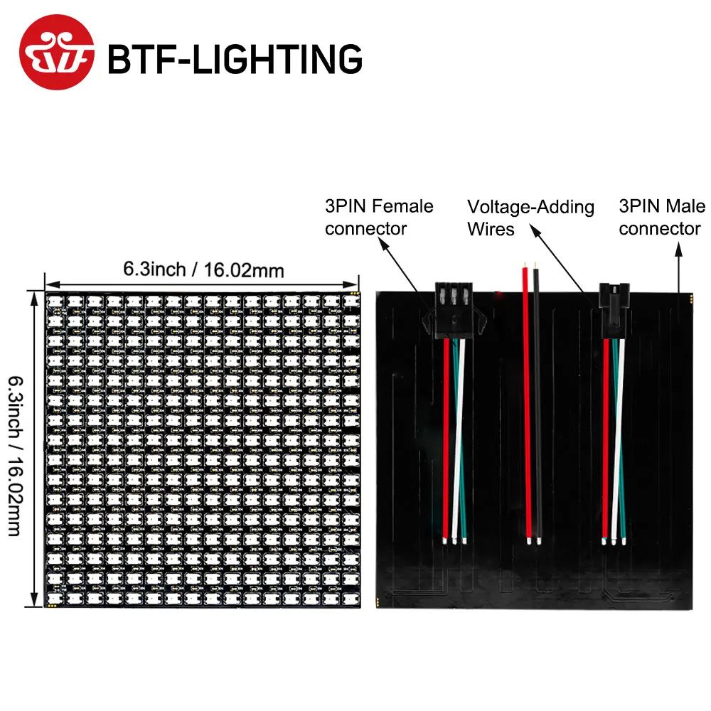 RGB-панель WS2812B, 16x16 пикселей, 256 пикселей, WS2812B, ECO, с индивидуальной адресацией, гибкая, запрограммированная, полноцветная, DC5V