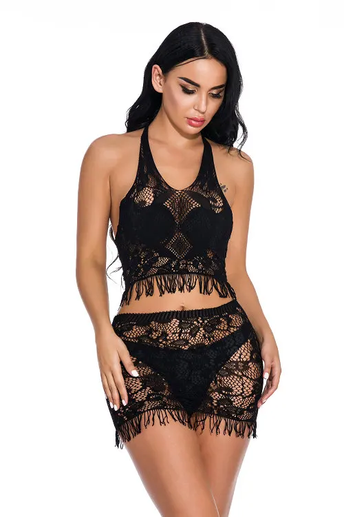 2 шт. кружевное мини-платье, сексуальное ажурное нижнее белье, платье с открытой спиной, облегающее платье Тедди с лямкой на шее, ягодицы, эротическое модное короткое платье