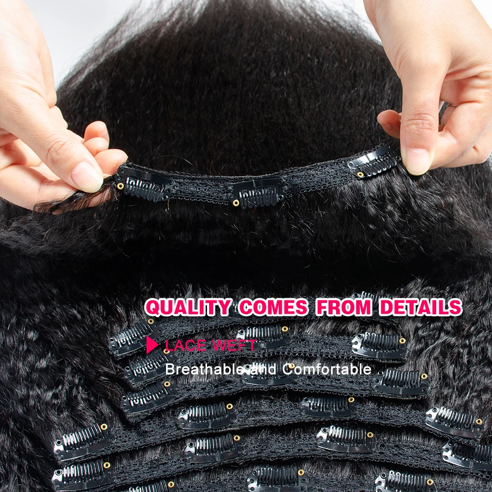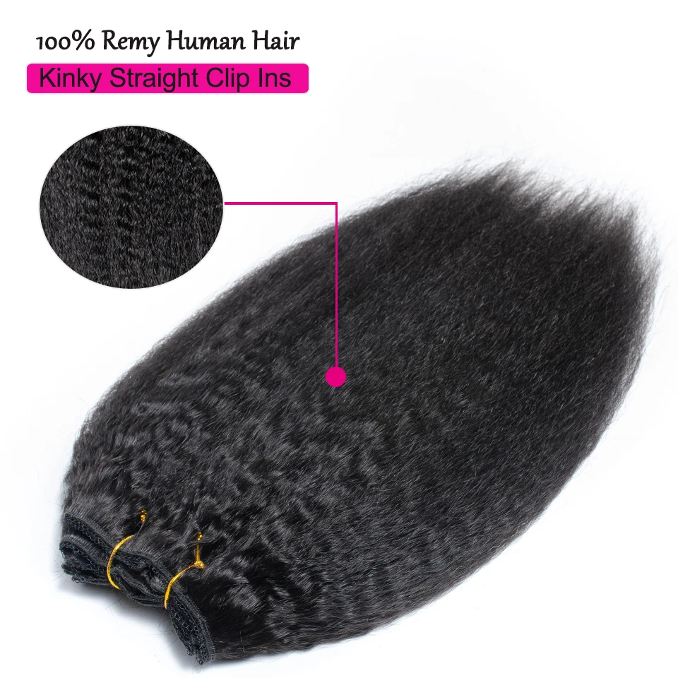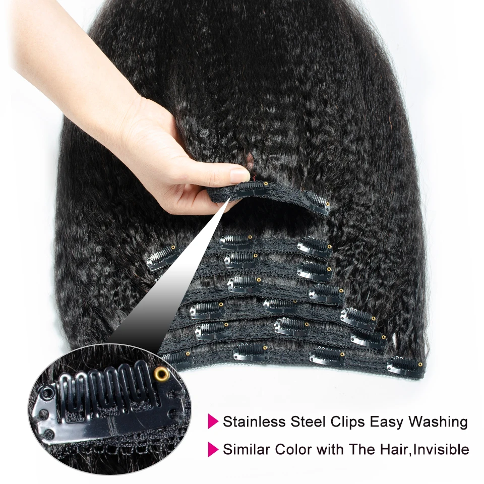 Волосы для наращивания, бразильские, прямые, с кудрявыми зажимами, 7 шт.компл., 120 г, для головы, 100% дюйма