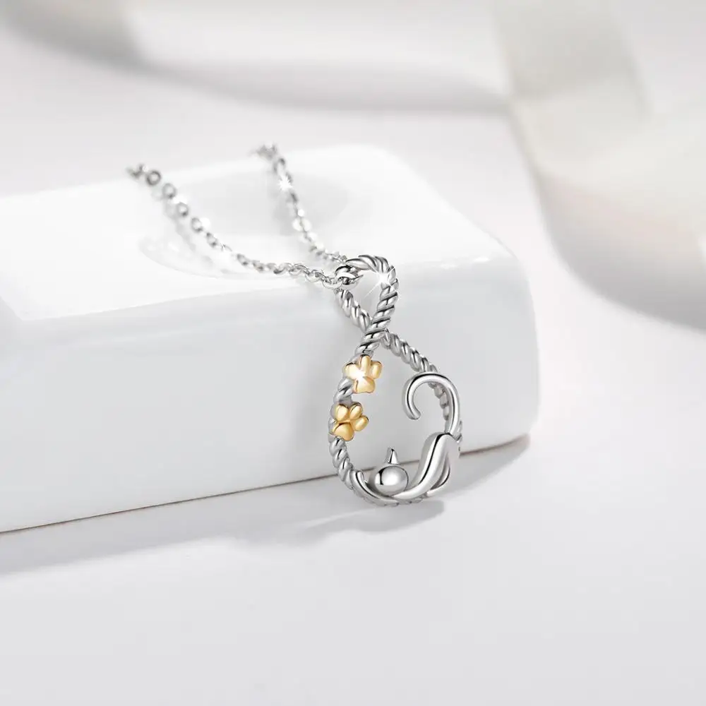 Ожерелье EUDORA из стерлингового серебра с подвеской в виде спящего кота, Золотистое Ожерелье в виде животного, ювелирные изделия для леди и девушки с коробкой D187