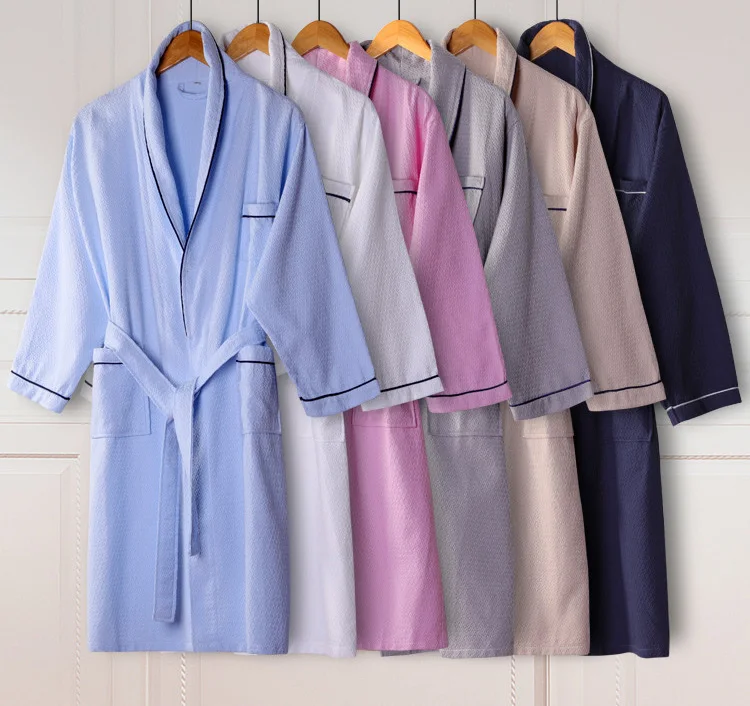 100% хлопок, вафельный серый халат, Мягкий банный халат, Женское ночное белье, повседневный домашний банный халат, однотонный халат, халат для гостиницы