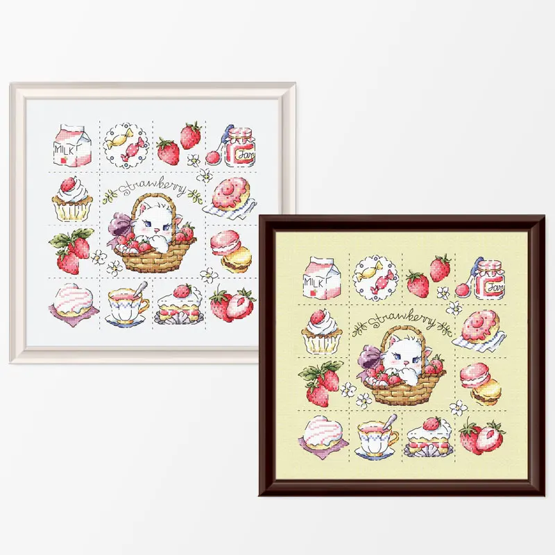 Fishxx Набор для вышивки китайским крестиком с напечатанной тканью, вышивка, домашние кошки и клубника
