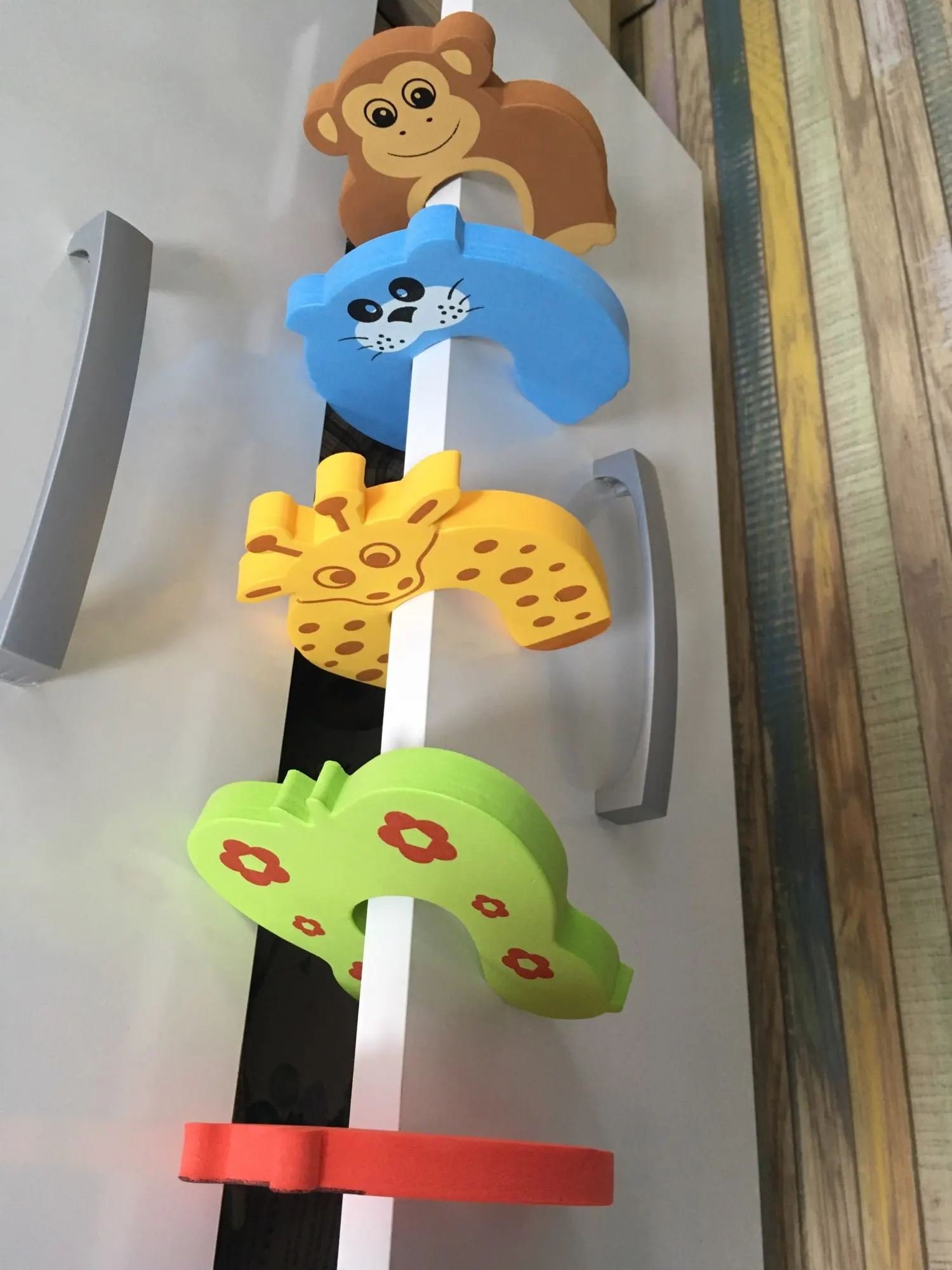 Классные ограничители, мягкие, подойдут на любую дверь. Стоит своих денег. Ребенок сначала наигрался ими, а потом надела на дверь, чтобы не снимал, я теперь спокойна что пальцы не прижмет