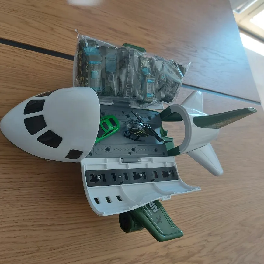 Классный самолёт с кучей разных машинок. Купили внуку, а муж сказал, что сам будет играть. Упаковка очень надёжная, пришло всё целое. Большое спасибо продавцу.