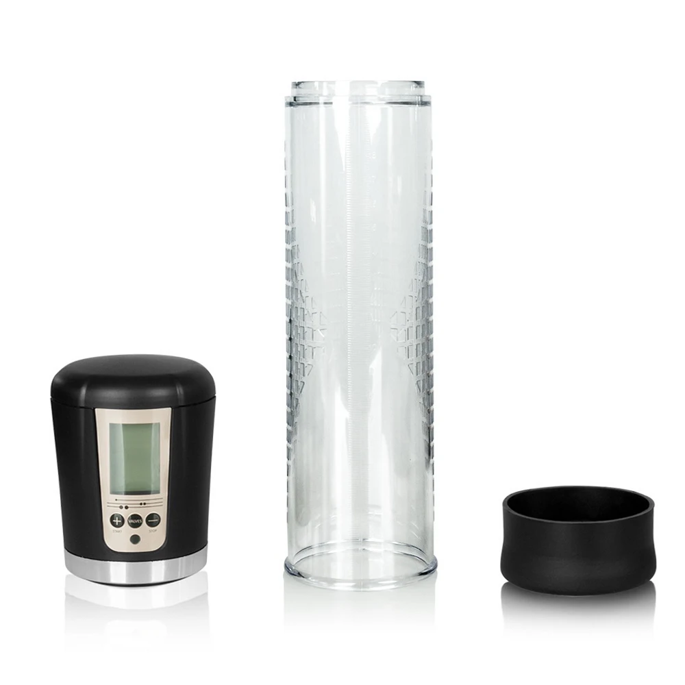 Заказывал версию в зеленой коробке. Уплотнительное кольцо очень мягкое. Засасывается внутрь. Пришлось примотать его скотчем к колбе. Также, из-за мягкости кольца, засасывается мошонка и яйца, необходимо их придерживать. Большой плюс, что работает от внутреннего аккумулятора, есть зарядка от юсб.