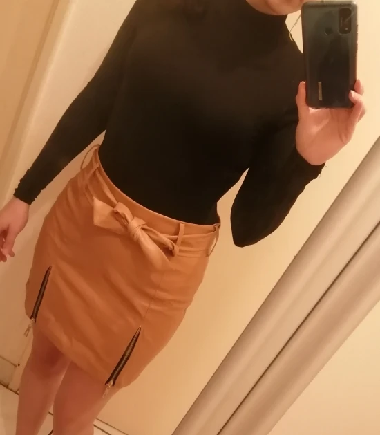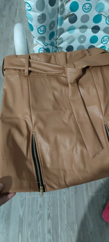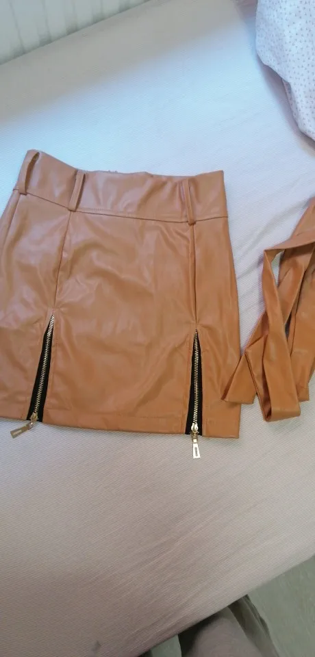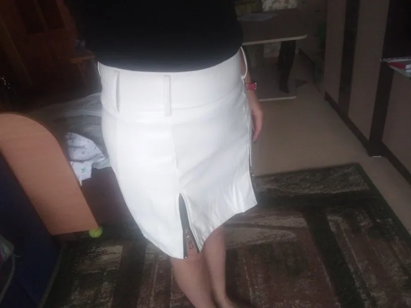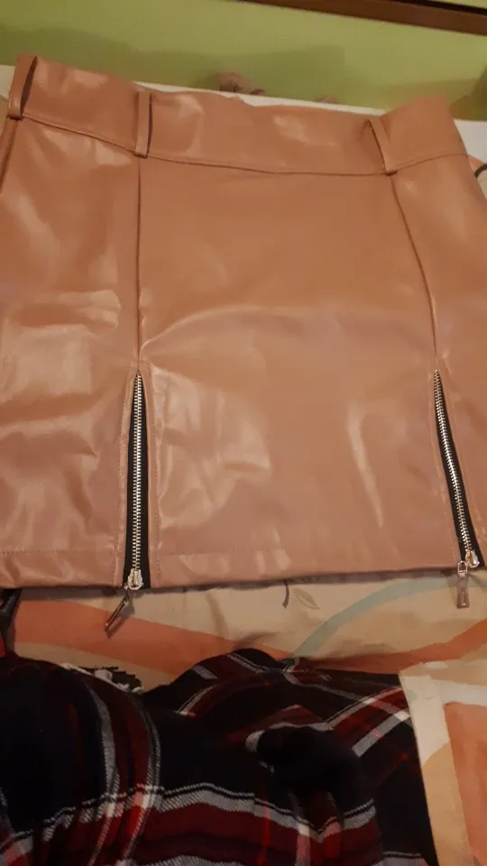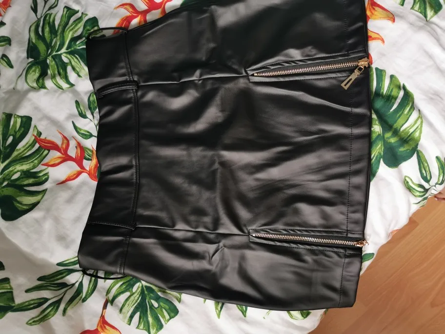 Юбка была упакована в течение 12 дней. Искусственная кожа очень приятна на ощупь! К сожалению, немного затягивает молнию и шов, когда молния не чистая, слегка неустойчивая. (См. Изображение) В противном случае все выглядят супер отлично! Спасибо вам