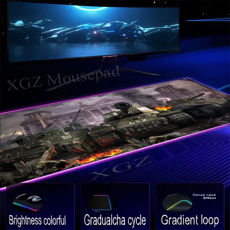 Большой коврик для мыши XGZ, RGB, черный, с застежкой по краям, 3d фильм, Зеленый танк, мир, индивидуальный студенческий коврик для компьютерного стола, нескользящий, Lol, Csgo, для геймеров Xxl