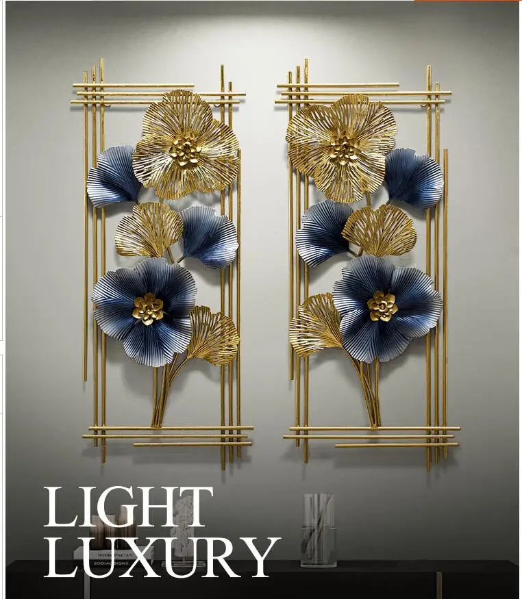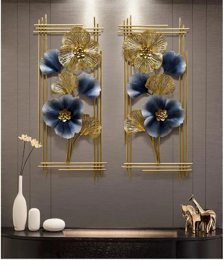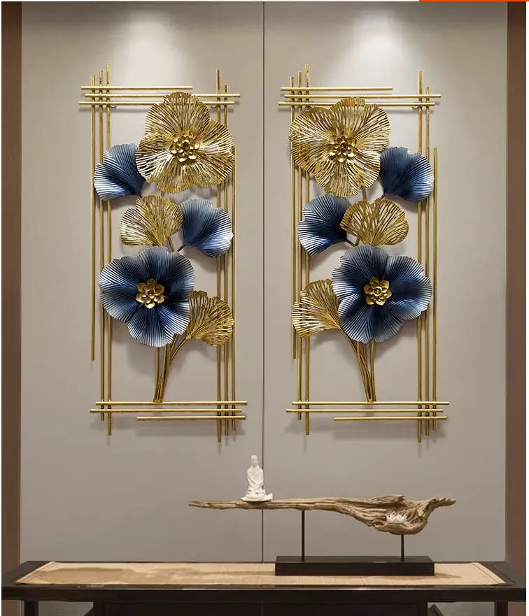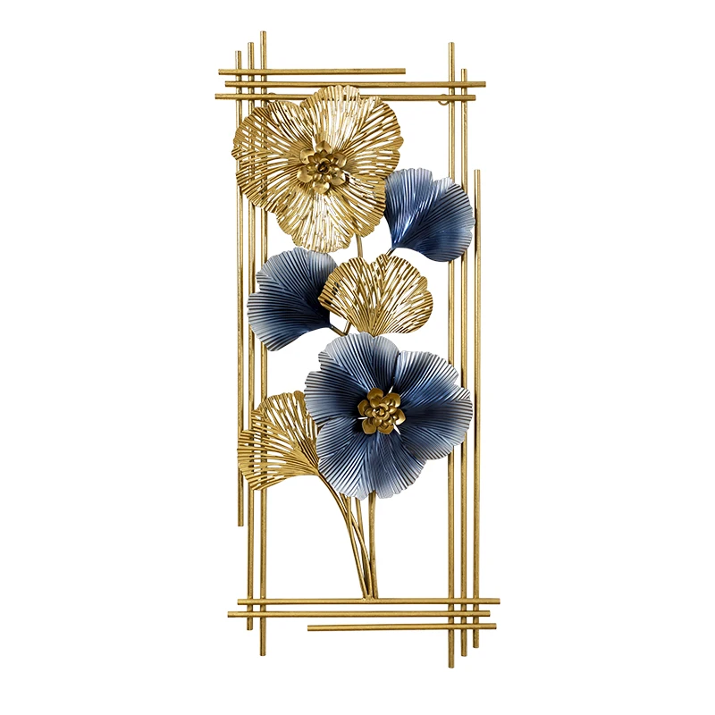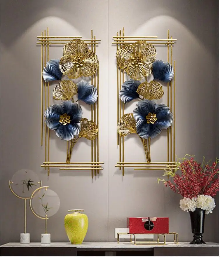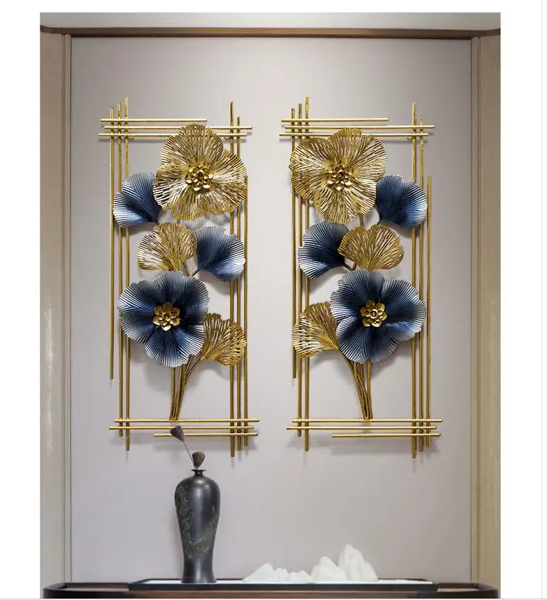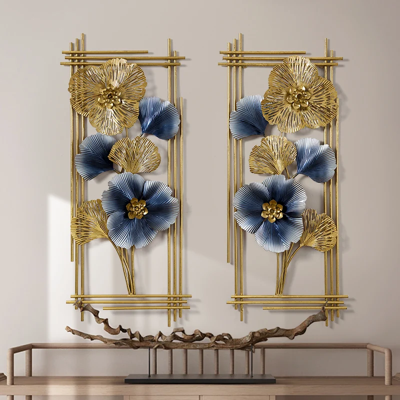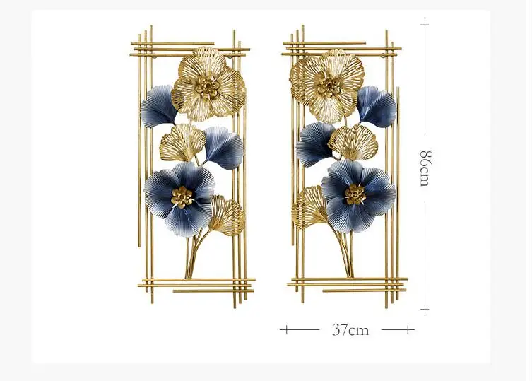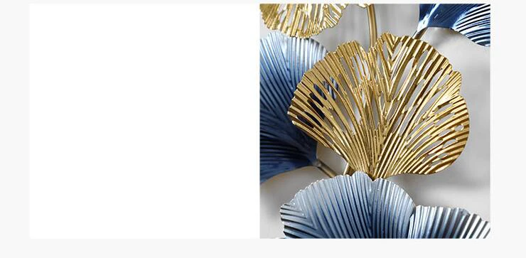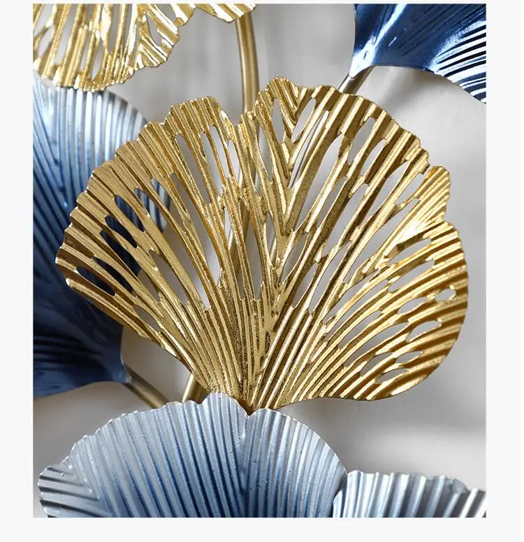 Новые китайские кованые железные синие Золотые листья гинкго настенные подвесные ремесла домашняя гостиная фоновая Наклейка на стену настенное украшение