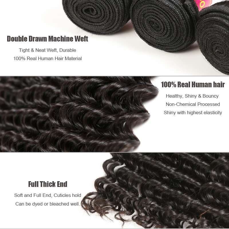 Название товара: бразильские пряди человеческих волос с глубокой волной и застежкой Наименование бренда: Ali Queen Hair Products Co., Ltd Цвет волос: естественный черный цвет, можно красить и отбеливать. Текстура застежки: швейцарское кружево Размер застежки: 4x4 / 13x4 с плотностью 130% Длина волос: 12 "~ 24" Материал волос: 100% натуральные волосы высокого качества Срок поставки: около 2-5 дней на DHL/FEDEX Особенность: здоровая, насыщенная и упругая текстура