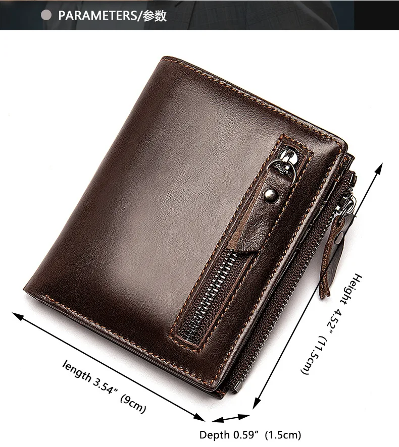 Кошелек мужской из 100% натуральной кожи с Rfid-защитой и отделением для монет