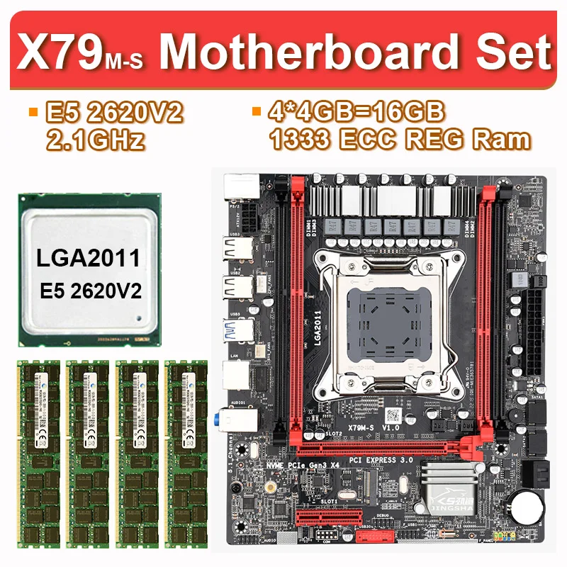 Комплект материнской платы JingshaX79 USB3.0 с Xeon LGA2011 E5 2620 V2 4x4 ГБ = 16 Гб 1333 МГц память DDR3 ECC REG M.2 SSD SATA3.0