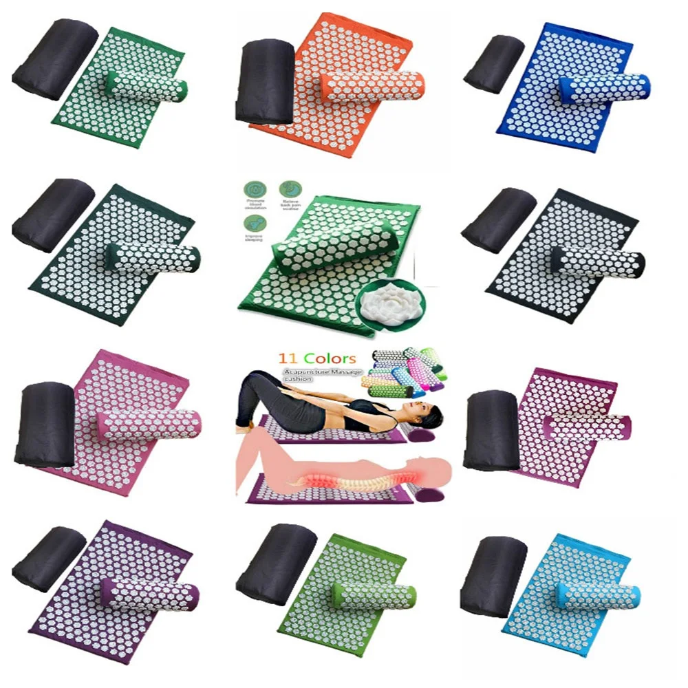 Массажный коврик с подушками Lotus акупрессурный мат, коврики для йоги, снятие боли в спине, коврик с шипами для головы, шеи, ног, антистрессовый игольчатый массажер