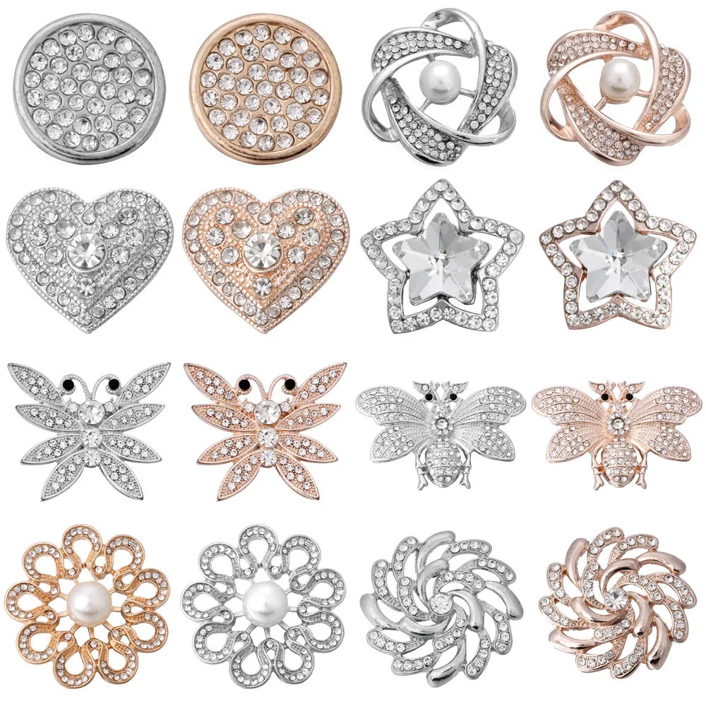 6 шт.лот кнопки-застежки со стразами 18 мм 20 мм Серебряный цвет розовое золото сердце цветок кнопки подходят для ювелирных изделий DIY