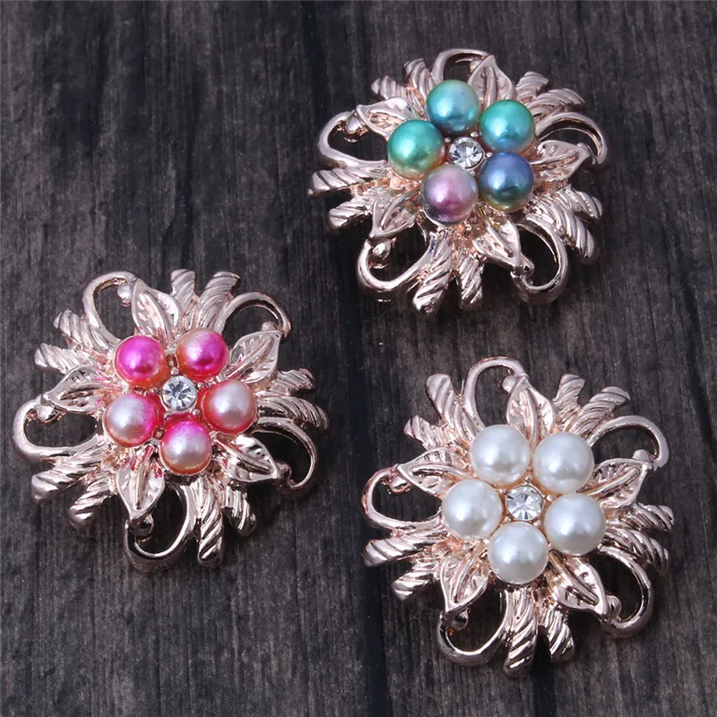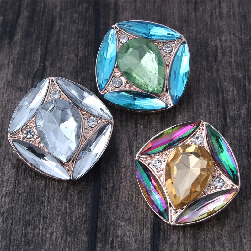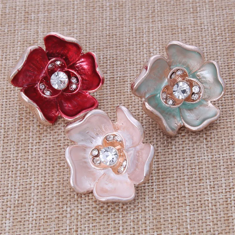 6 шт.лот кнопки ювелирные изделия 18 мм кнопки смешанные цвета розовое золото Кристалл горный хрусталь цветы металлические защелки для кнопки браслета
