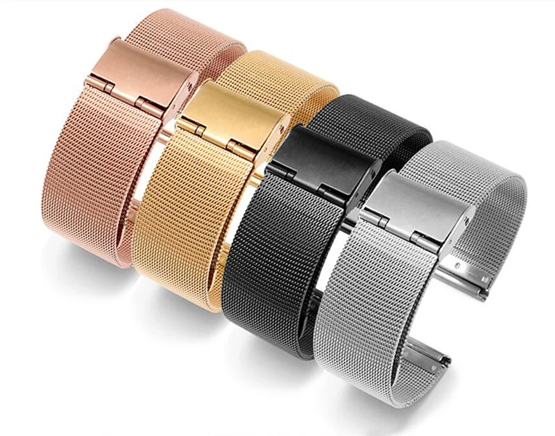 Ремешок для часов Milanese 12 мм, 14 мм, 16 мм, 18 мм, 20 мм, 22 мм, 24 мм, универсальный металлический ремешок для часов из нержавеющей стали, черный, розовое золото