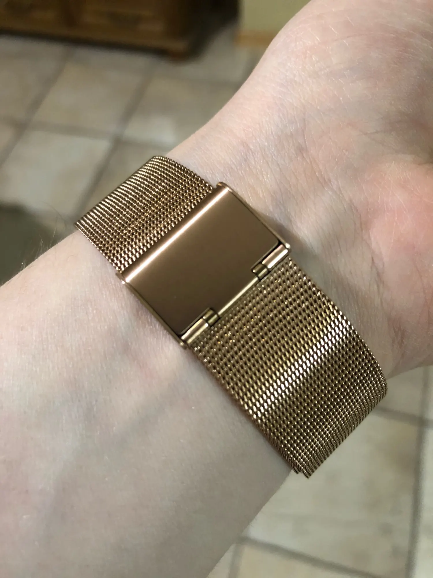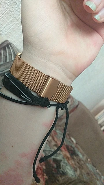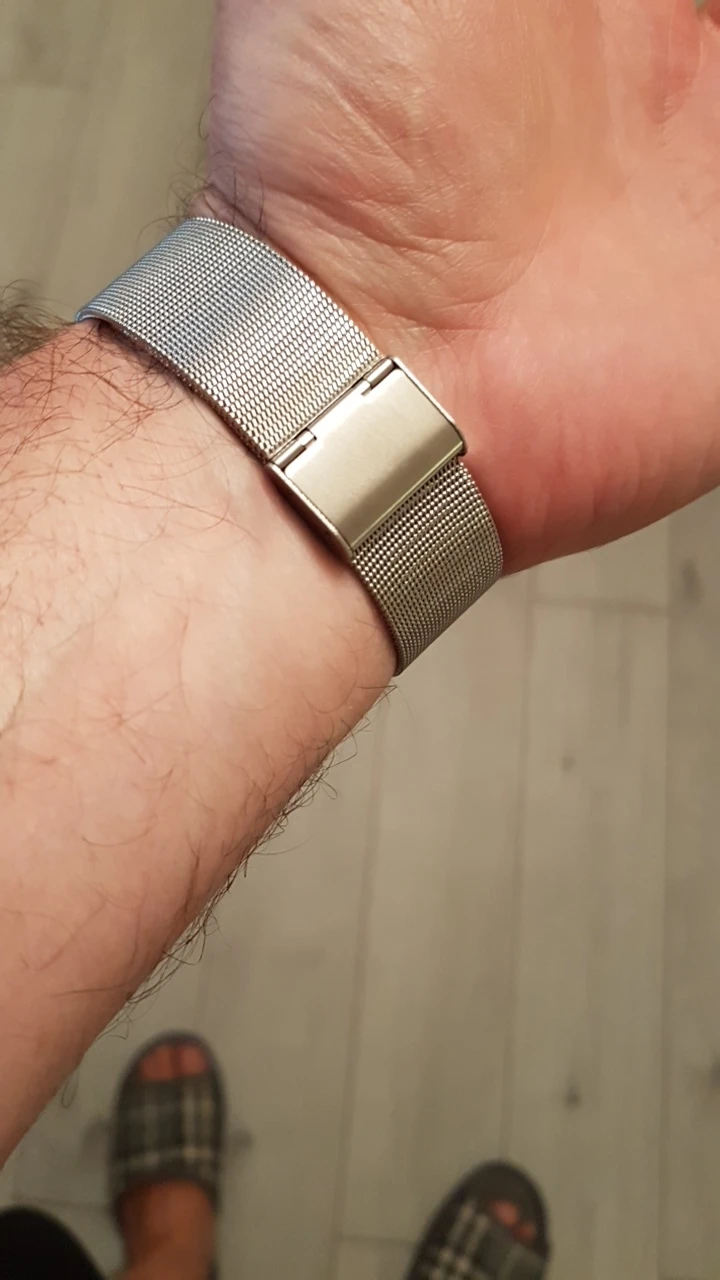 Я уже покупал такой ремешок ранее. Хочу сказать о такого рода ремешках что они шикарно сидят на руке и не сковывают движение и не вызывают дискомфорта, как, например, классические металлические ремешки или прилипучие силиконовые или жесткие кожаные... Самые удобные ремешки это вот как раз такие на мой взгляд.