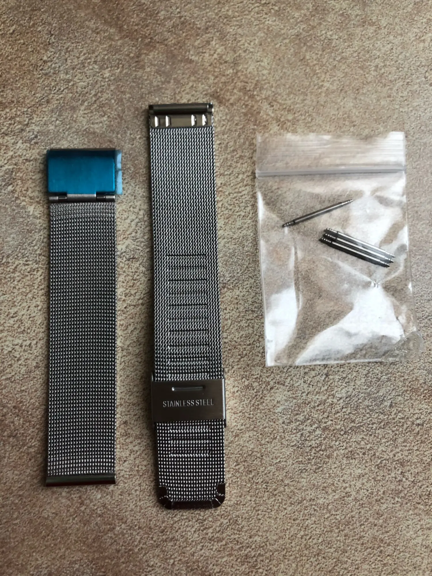 Very fast shipping. Ремешок такой же, как в описании. У него очень красивый и элегантный оттенок. Включает в себя 2 стержня. Идеально вписывается в часы 22 мм. Очень доволен покупкой