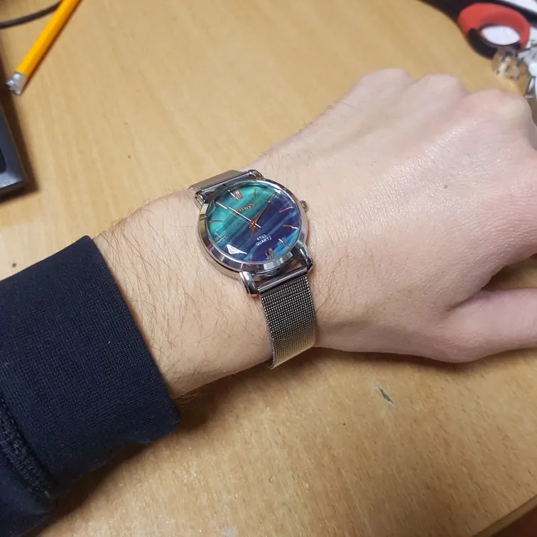 Шикарный ремешок! Прибыл всего за 2 недели до Ставрополя! На часы оделся без проблем! Цвет соответствует картинке. Сам ремешок можно регулировать, подойдёт на любое запястье. Смотришься аккуратно и стильно. Советую однозначно!