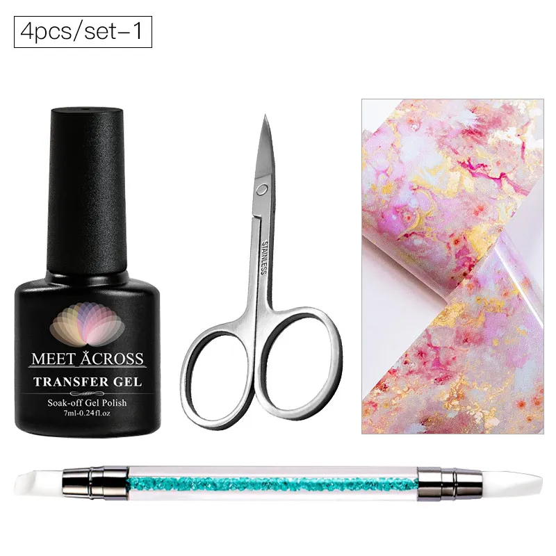 Клей для ногтей MEET ACROSS с набором наклейка из фольги, мраморная серия, наклейки из фольги, переводной клей, наклейка, инструмент для украшения