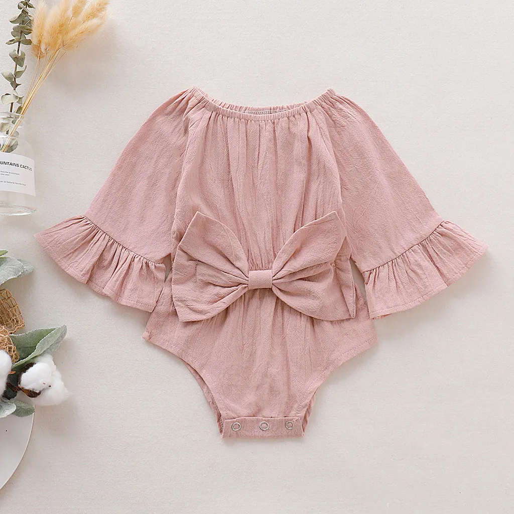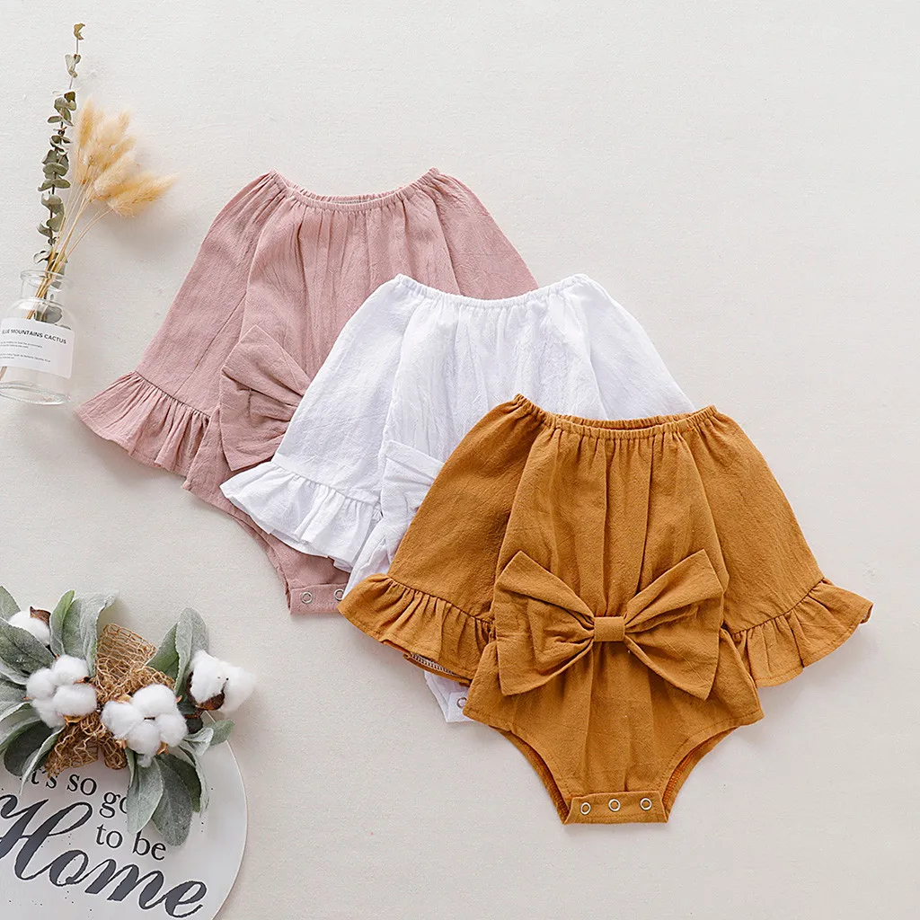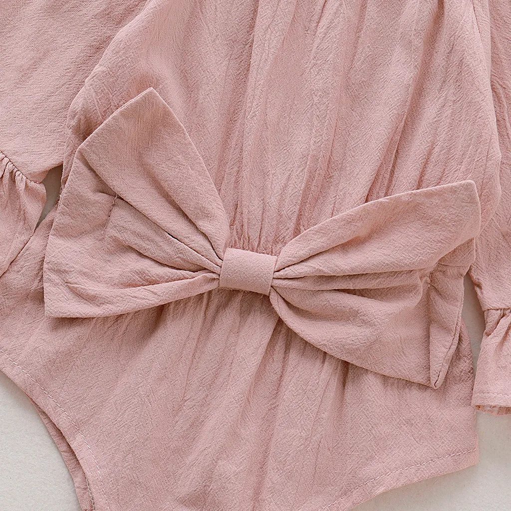 Летнее Детское платье с бантом для новорожденных, боди для малышей, одежда для малышей, одежда с длинными рукавами и бантом для младенцев, Новый комбинезон