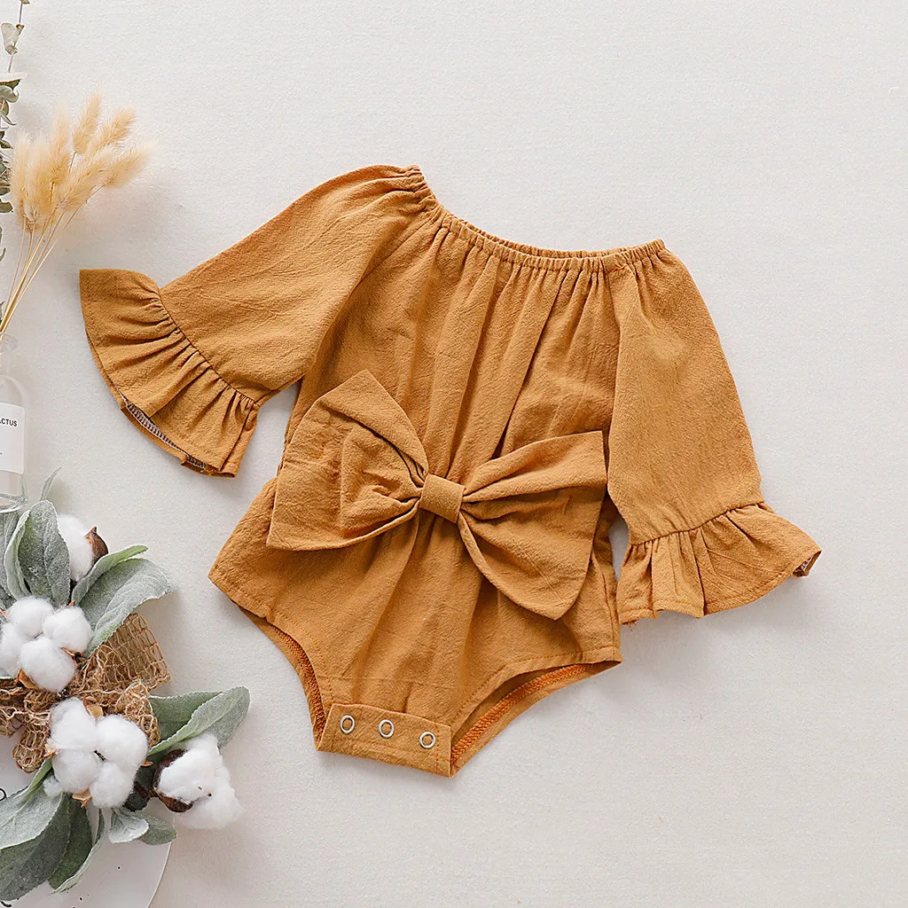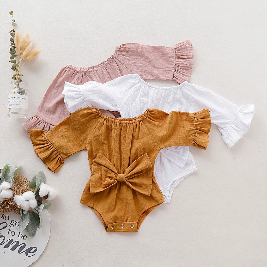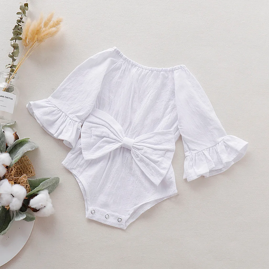 Летнее Детское платье с бантом для новорожденных, боди для малышей, одежда для малышей, одежда с длинными рукавами и бантом для младенцев, Новый комбинезон