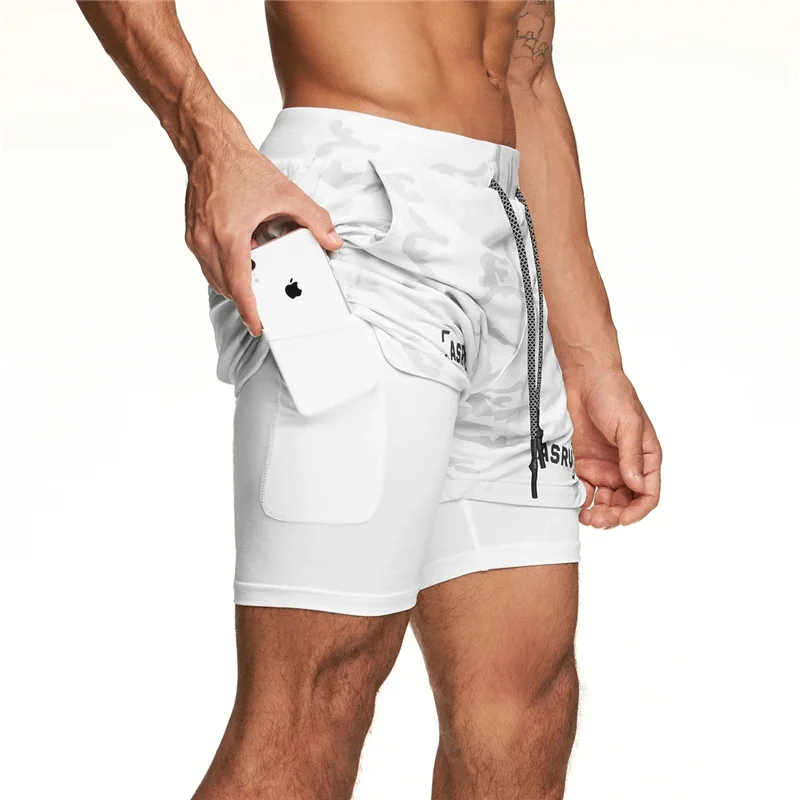 Мужские повседневные шорты 2 в 1, быстросохнущие спортивные шорты для бега, фитнеса, бодибилдинга, тренировок, с встроенными карманами, шорты для спортзала