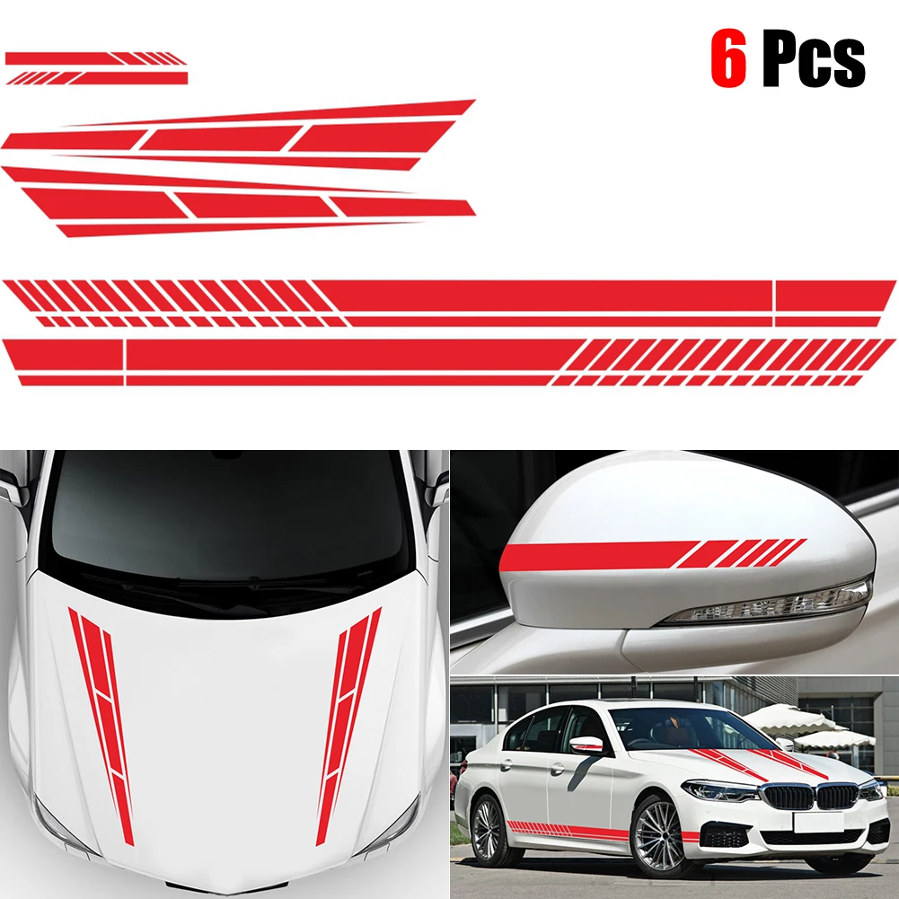 6x полоса виниловая наклейка графика автомобиля боковая крышка капота зеркало заднего вида