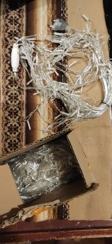 Взяли 30 гирлянд по 4 метра, брали для помещения, так как подобных гирлянд с таким удлинением для внутренних работ не было. В общем вонь просто неописуемая - даже при круглосуточной работе вытяжки. Сначала подумали, что это потому что они уличные, но потом понюхали ту что для дома - вонь такая же. Поэтому если вы хотите сделать подобный потолок, приготовитесь к долгой токсичной вони (сегодня 10 день). Все гирлянды пришли рабочими. Товар пришёл через 2 дня после оплаты по Москве.