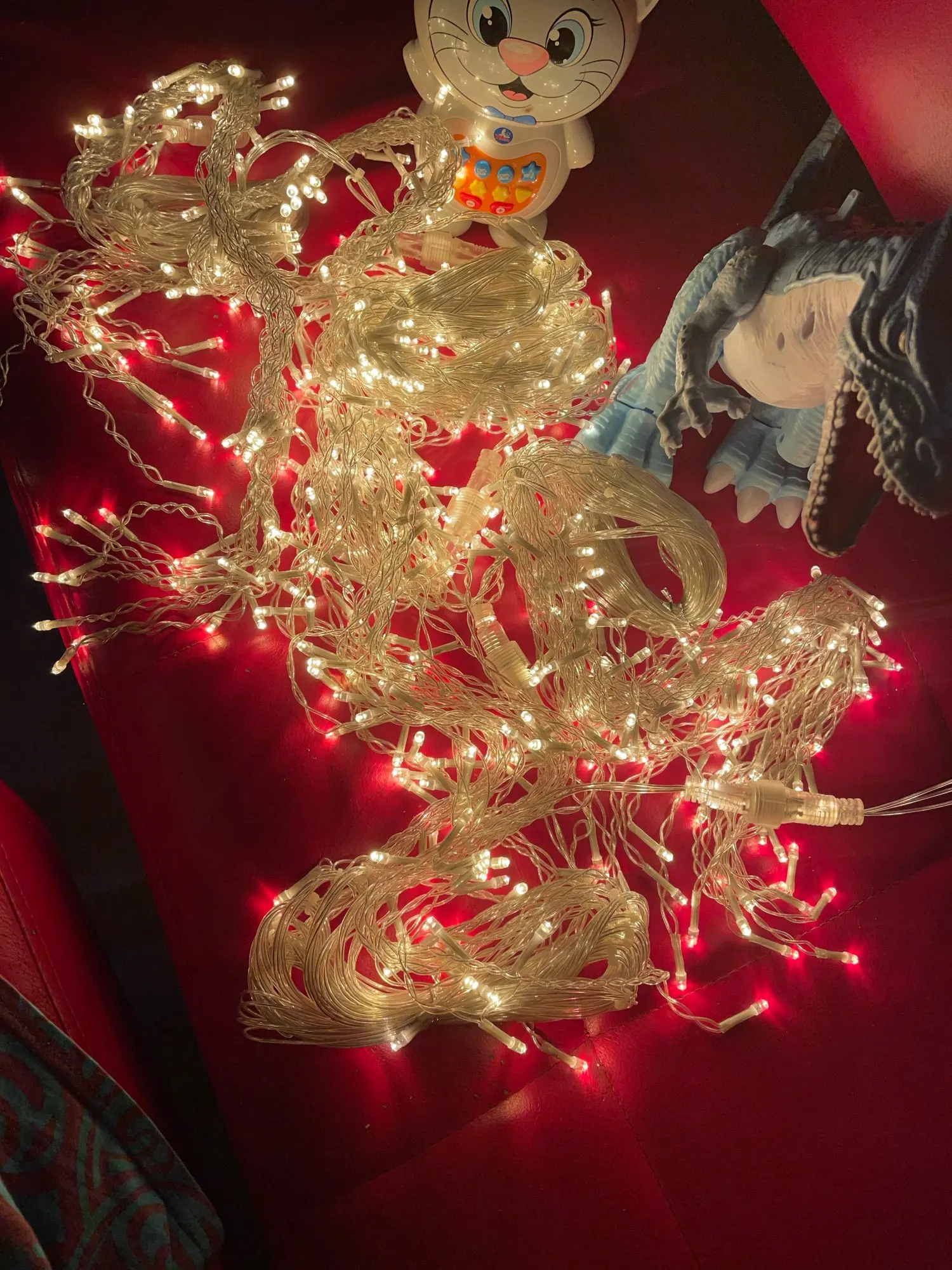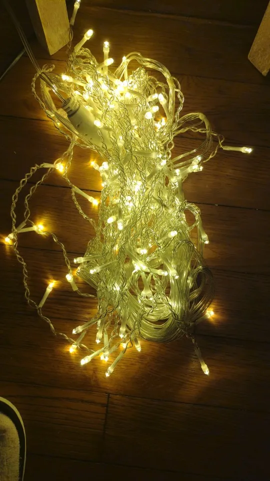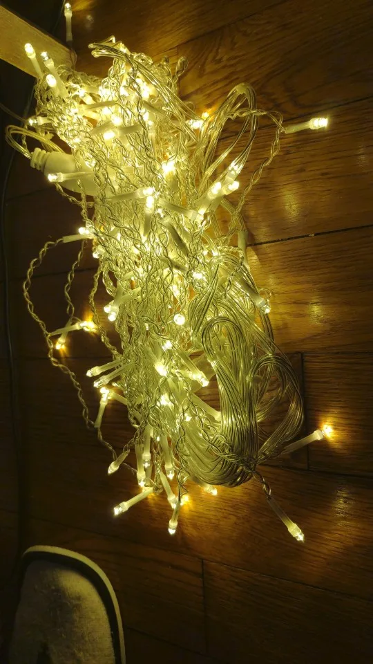 Все гирлянды работают, свет тёплый как и заказывала. Шнур со штепселем коротковат, пришлось нарастить.