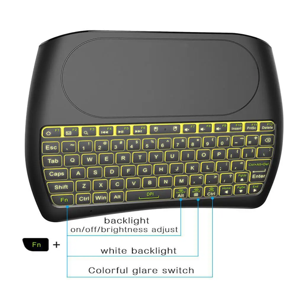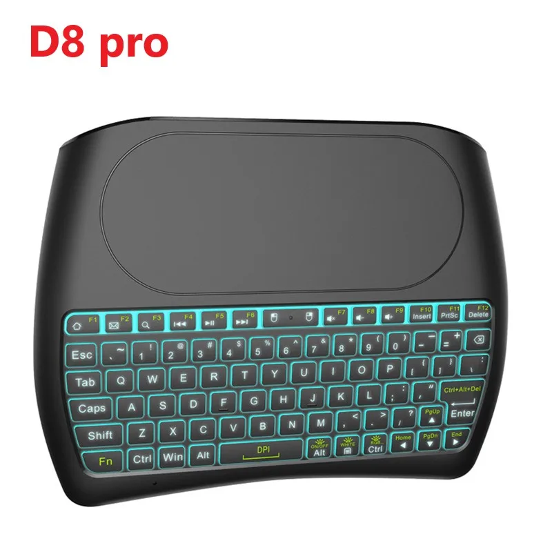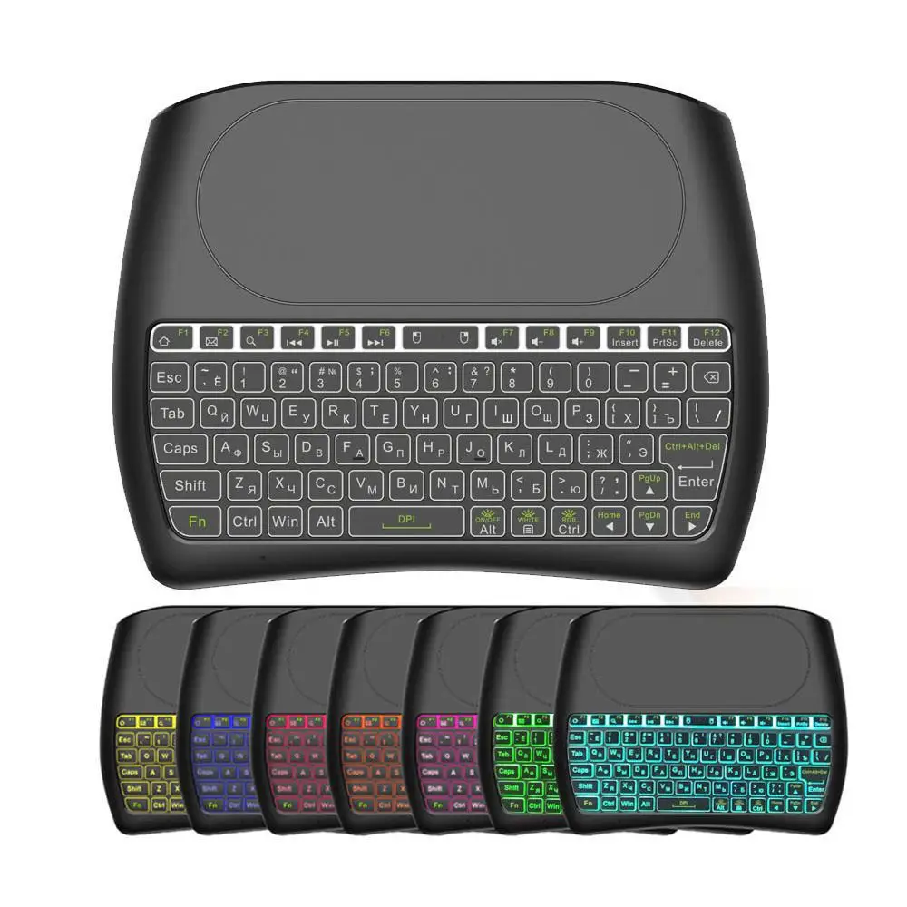 D8 Pro 2,4 GHz мини беспроводная клавиатура 7 цветов с подсветкой I8 Английский Русский Air Mouse Touchpad контроллер для Android TV Box PC