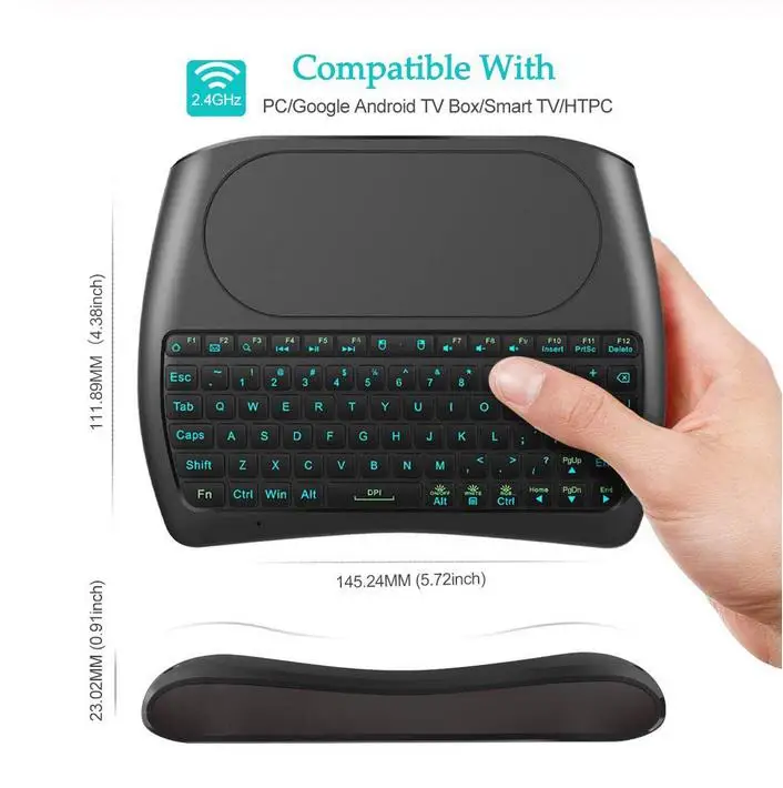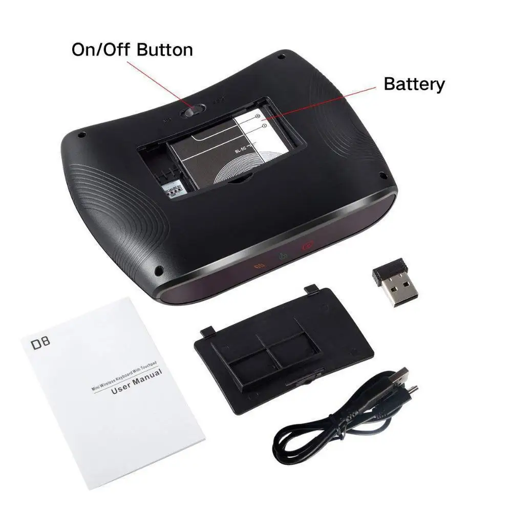 - 3 в 1 Мультимедийный пульт дистанционного управления -Самая мини беспроводная клавиатура с многофункциональным: Сенсорная панель + мышь + клавиатура + Радиочастотное беспроводное соединение 2,4G
