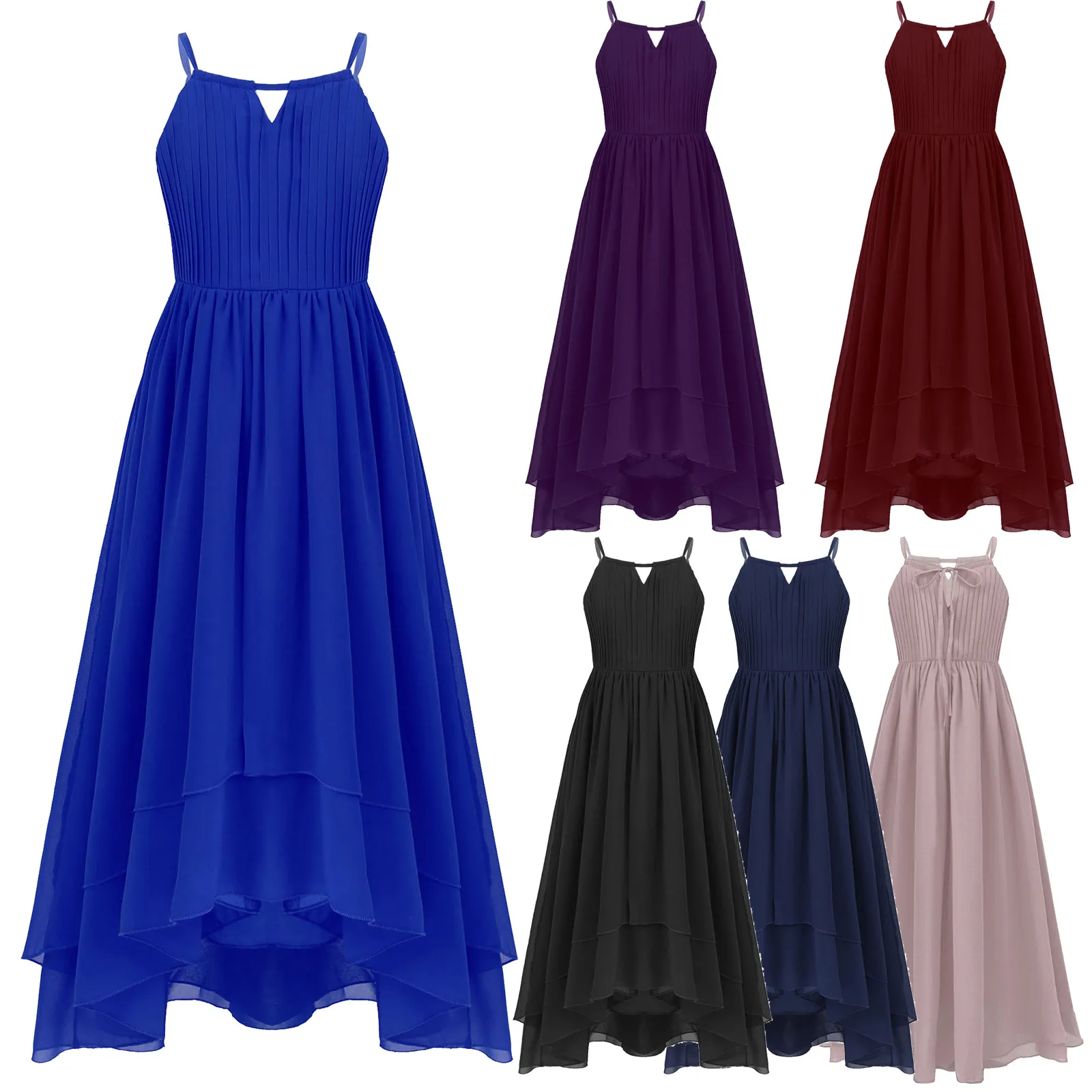 Детское платье с цветочным узором для девочек шифоновое плиссированное платье без рукавов с высоким низом, ассиметричное праздничное платье для девочек на свадьбу