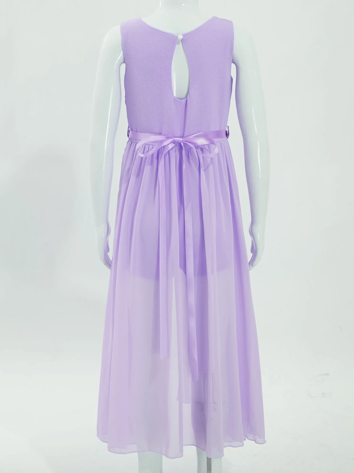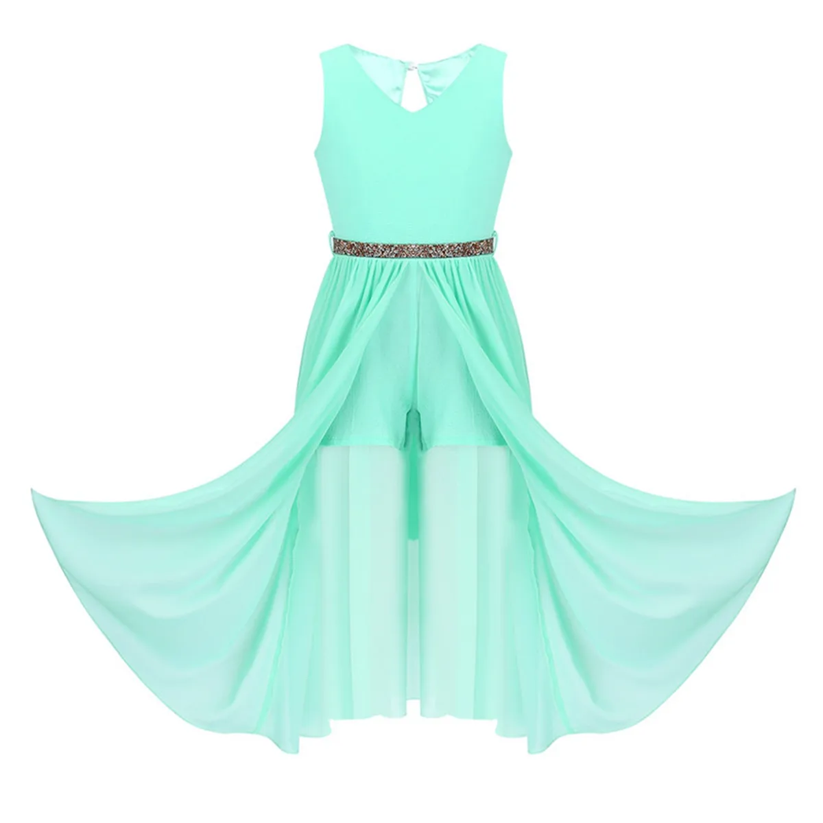 Особенности:Платье-комбинезон изготовлено из полиэстера и шифона, ручная стирка.Таблица размеров означает возраст для девочек, но только для общего руководства.Без рукавов, с v-образным вырезом и застежкой на пуговицы; Лиф с атласной подкладкой для комфортного ношения. Замочная скважина сзади. Скрытая застежка-молния сбоку.1 слой Макси-длины с шифоновым наложением крепится вокруг талии. Поставляется с Стразы ремень для завершения установки. В комплект входит: Красивое и стильное платье для вашей девочки.Идеально подходит для школьных танцев, дней рождения, праздников, фотосессий, официальных мероприятий или других особых случаев.