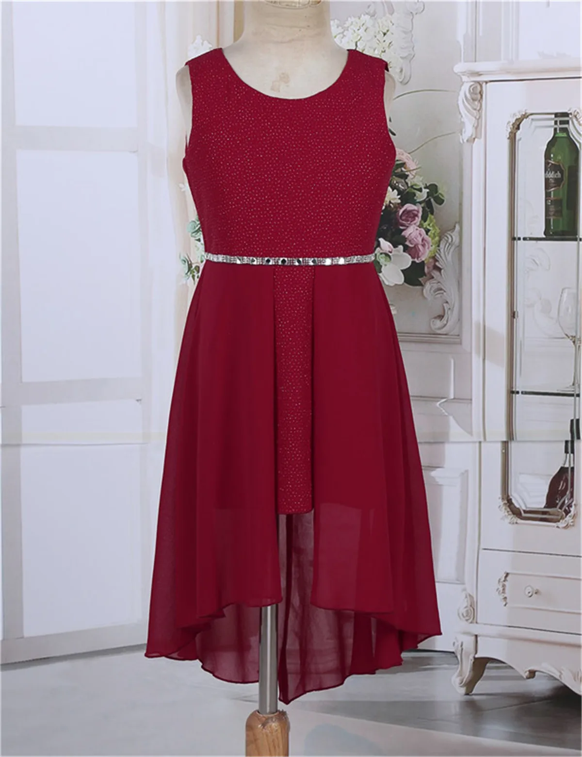 Особенности:Платье изготовлено из полиэстера и шифона, ручная стирка.Таблица размеров означает возраст для девочек, но только для общего руководства.Без рукавов, Круглый воротник с застежкой, с высокой талией дизайн, украшенный к требованиям заказчика; Сверкающие стразы спереди, с заплетенной лентой сзади.Скрытая Центральная застежка-молния сзади. 1 слой с высоким и низким подолом, шифоновая накладка, прикрепляемая к талии. Платье с блестками для вашей девочки.Идеально подходит для лета, вечерние, дня рождения, праздника, повседневной носки и т. д.