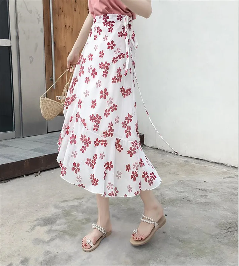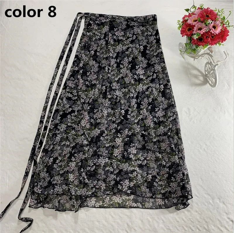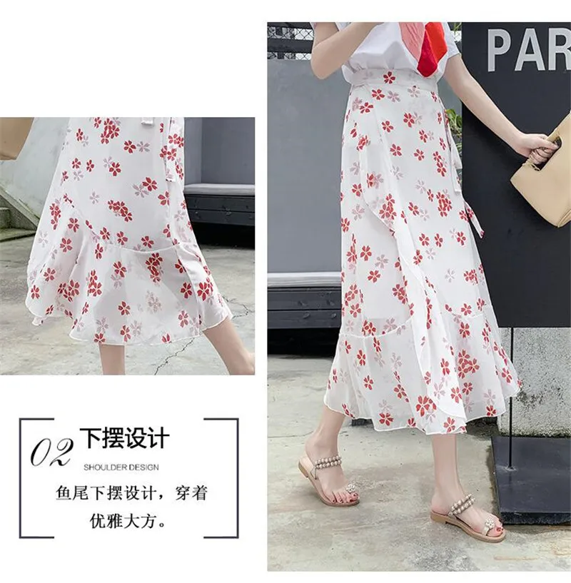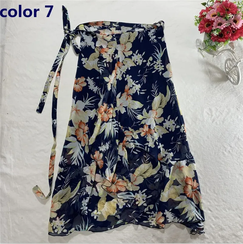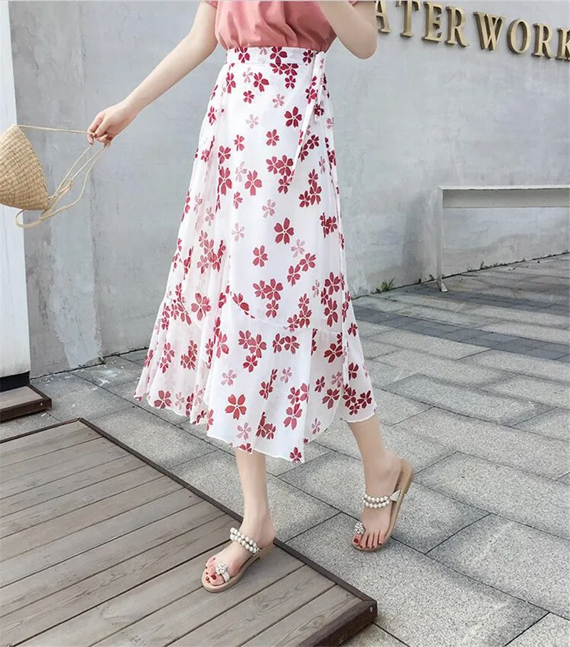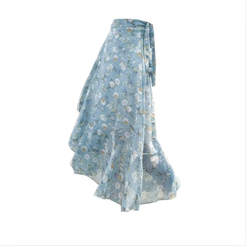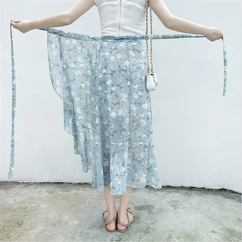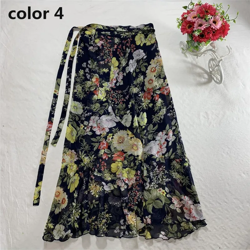 Женская шифоновая юбка, элегантная ассиметричная юбка с цветочным принтом, с оборками, для отдыха, для пляжа, лето, размера плюс, L-8XL