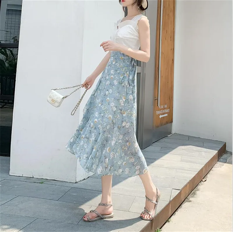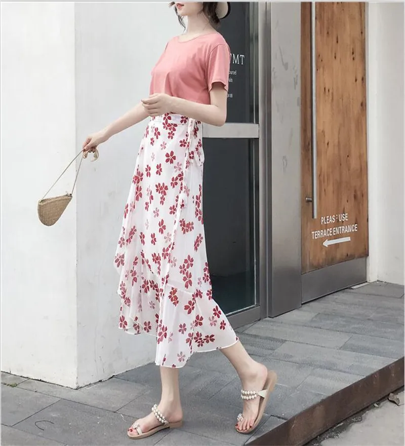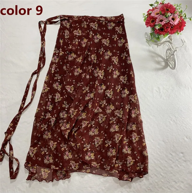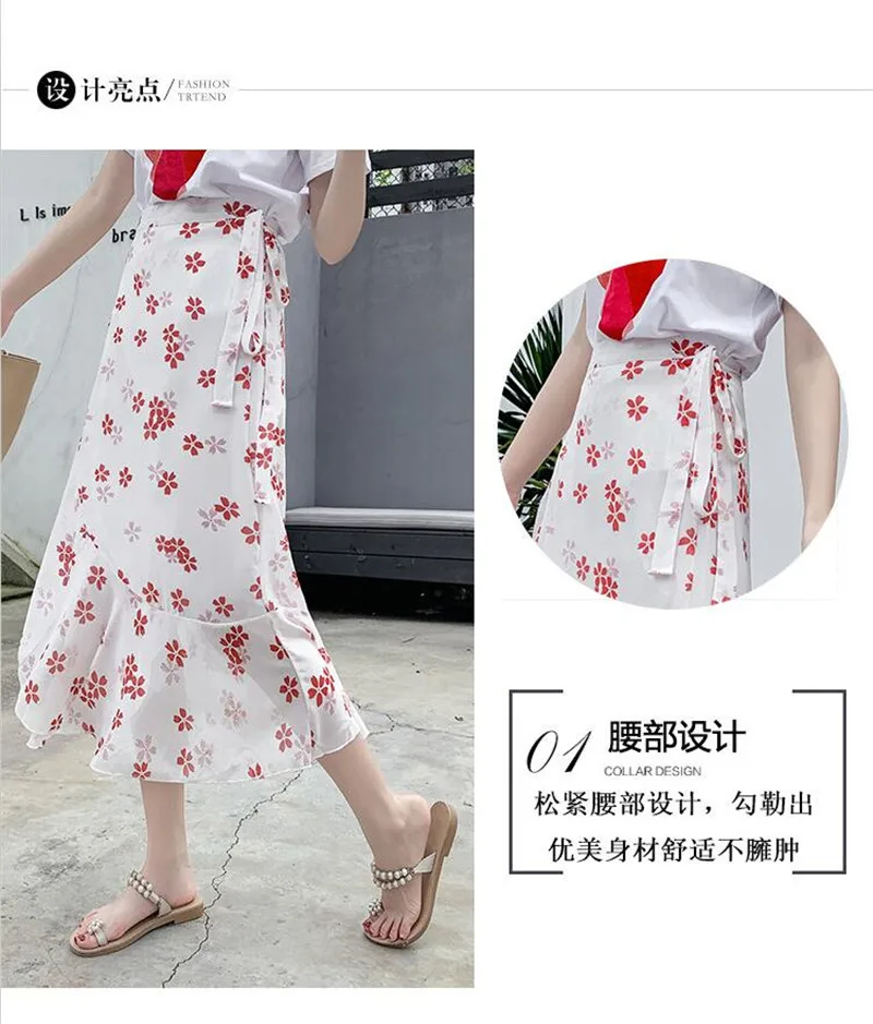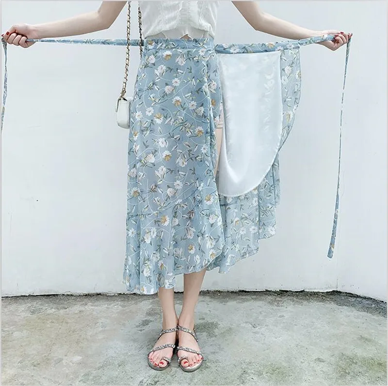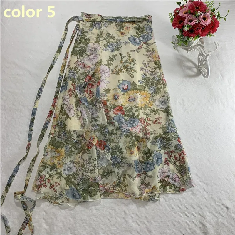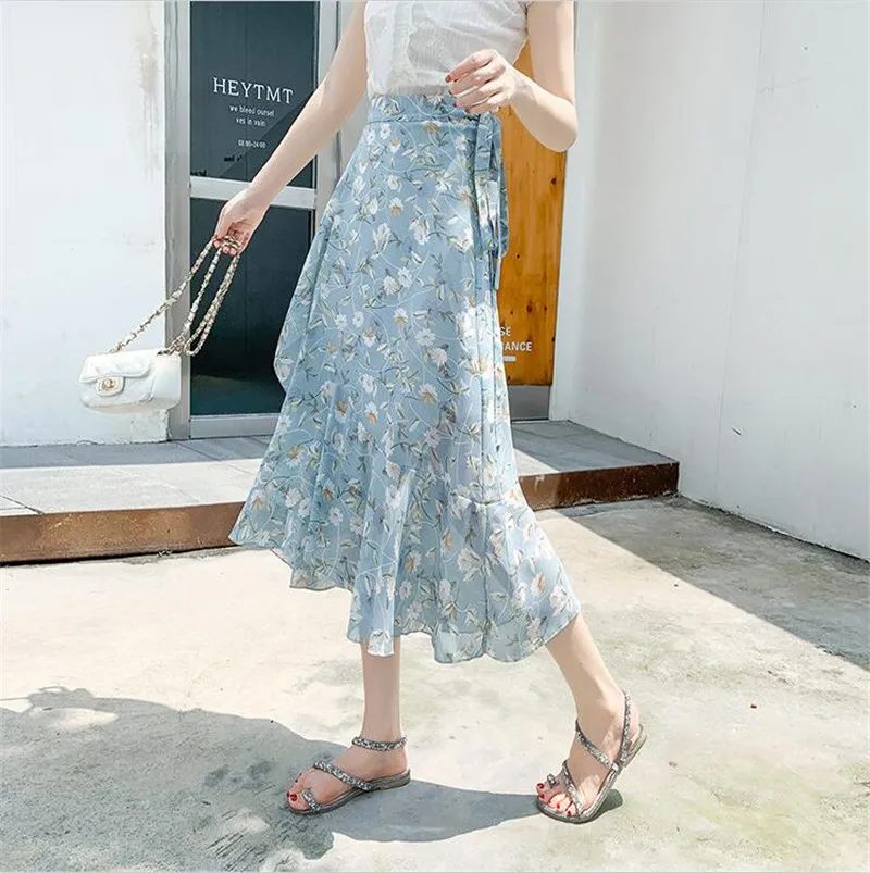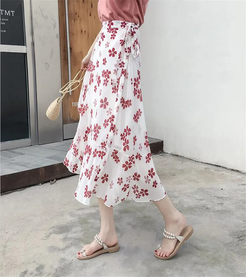 Женская шифоновая юбка, элегантная ассиметричная юбка с цветочным принтом, с оборками, для отдыха, для пляжа, лето, размера плюс, L-8XL