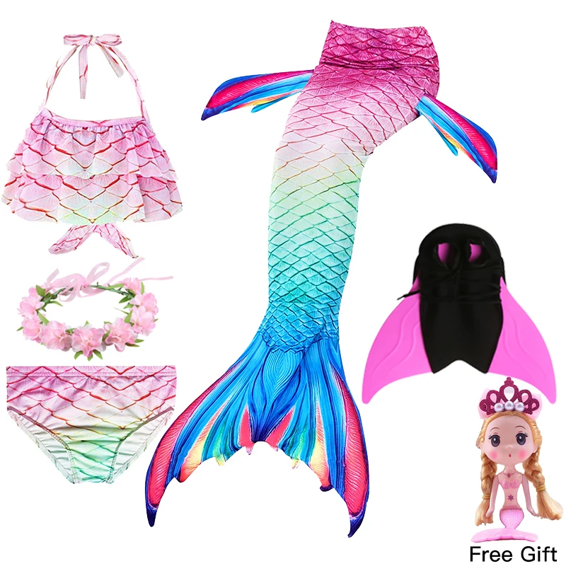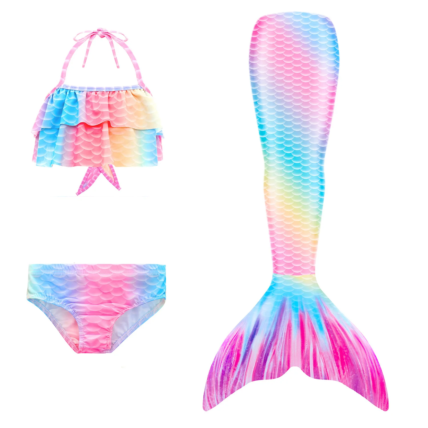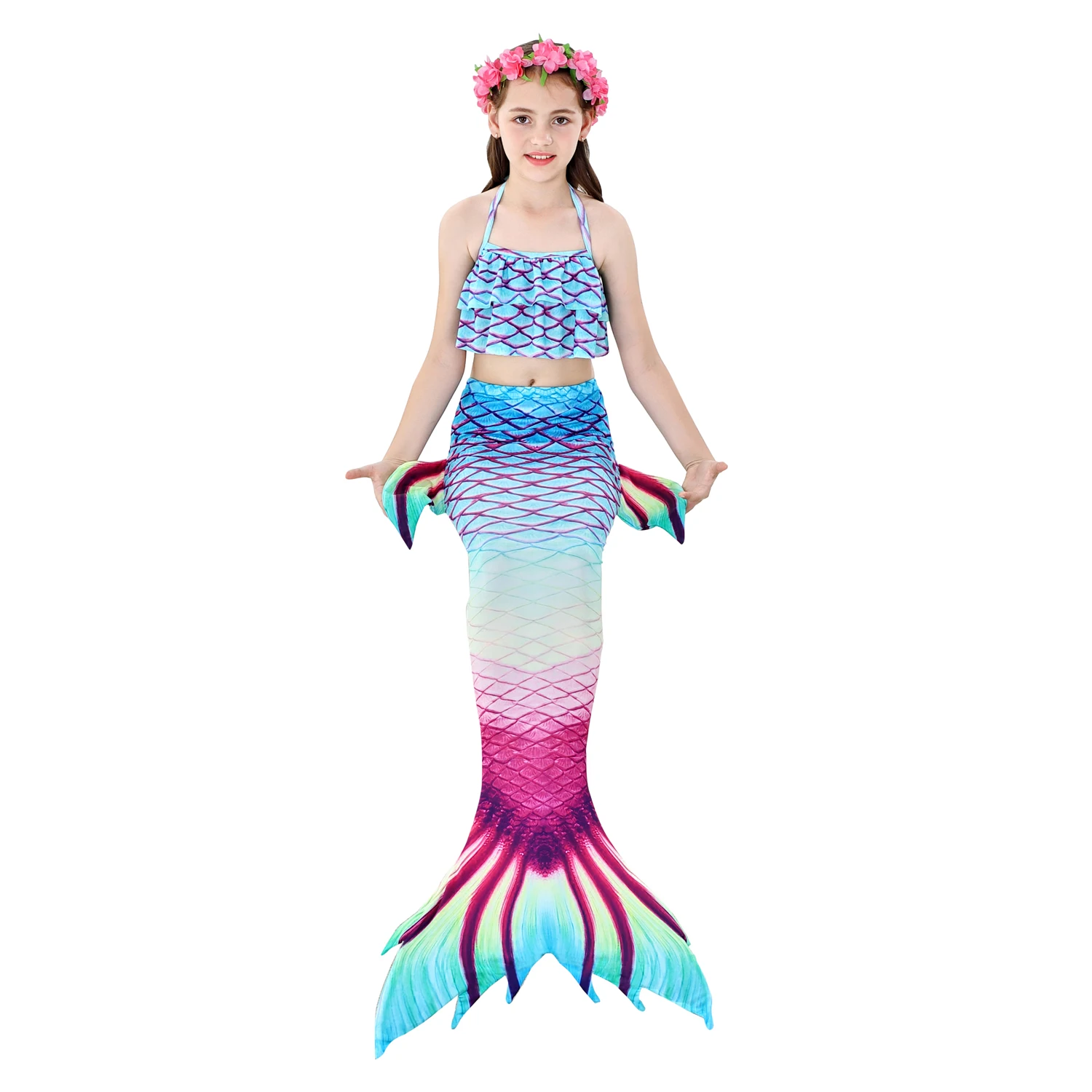 Детский купальный костюм Русалочки для девочек, купальный костюм с плавниками, платье для девочек, летняя пляжная одежда, купальники с бикини, Флиппер
