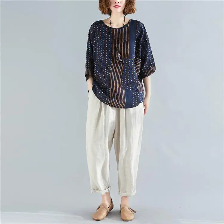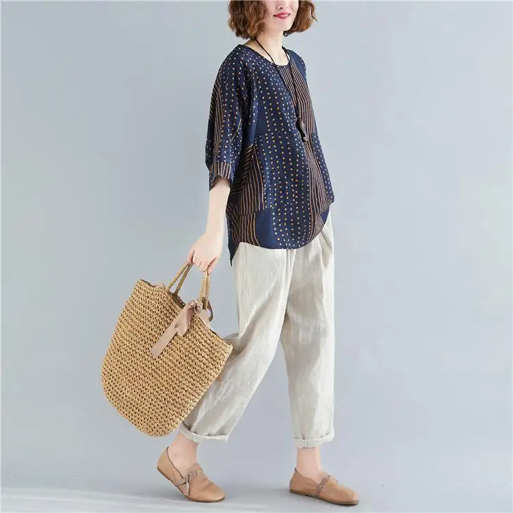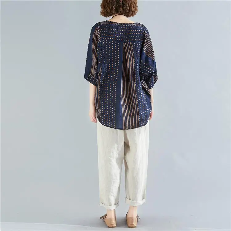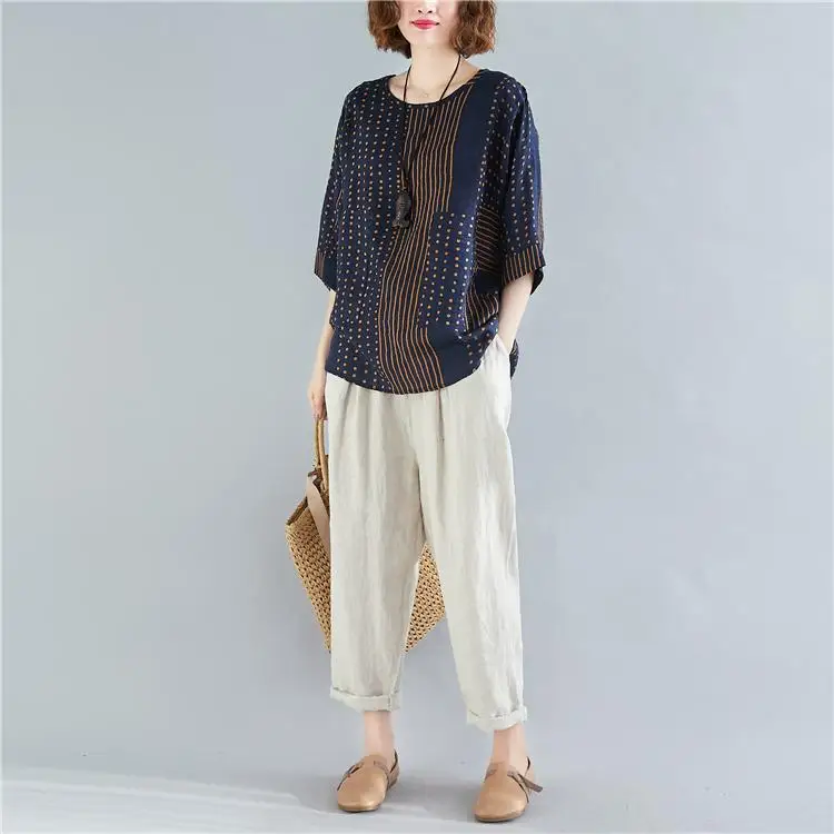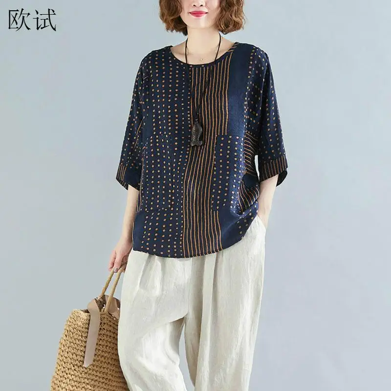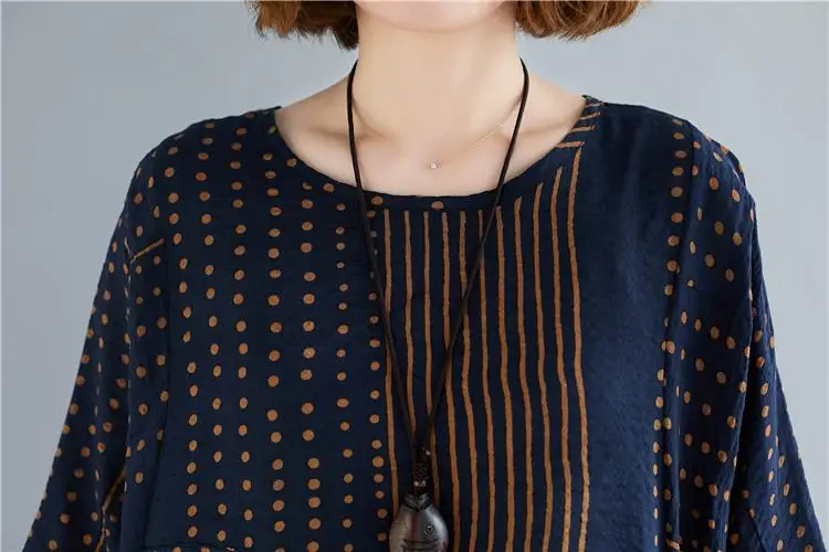 Футболка женская хлопковая в горошек, в полоску, большого размера, летняя, 2021
