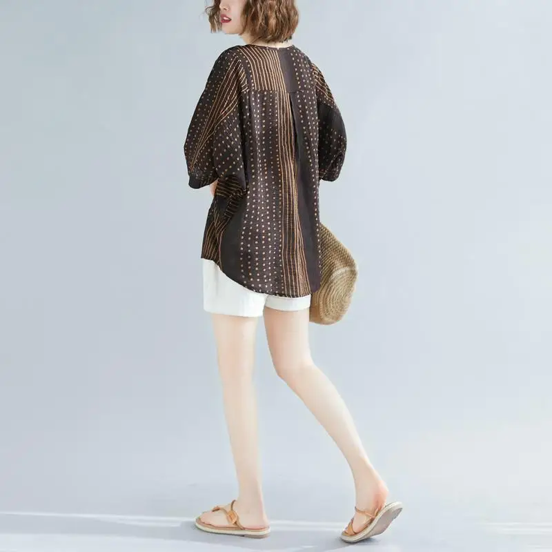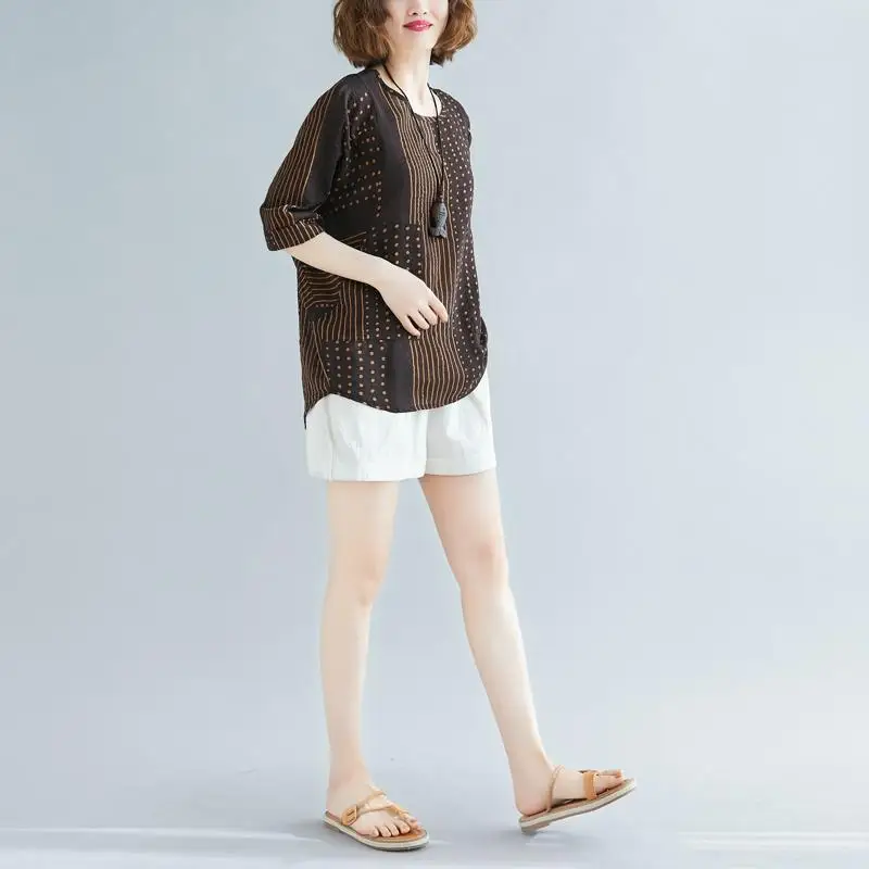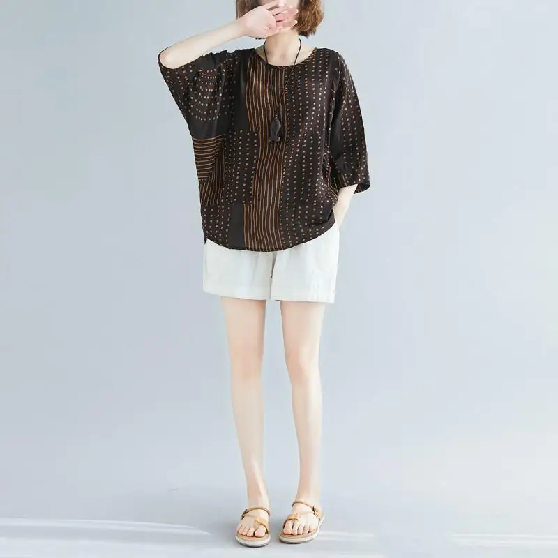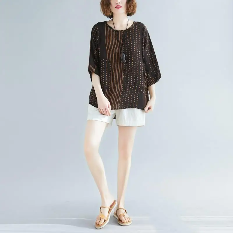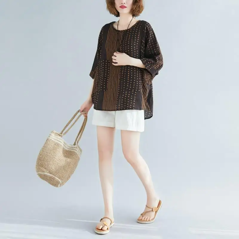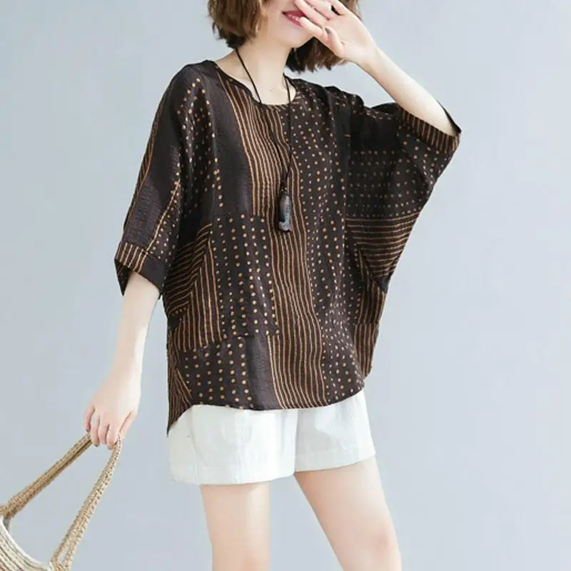 Футболка женская хлопковая в горошек, в полоску, большого размера, летняя, 2021