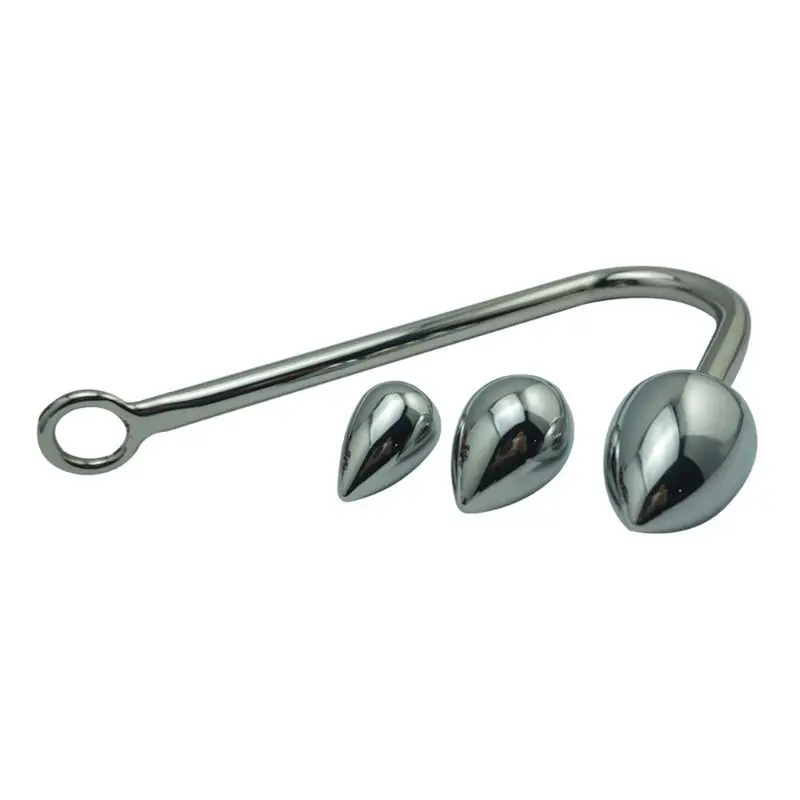 Анальный крючок, сменные анальные пробки 3 размера, в наборе, Метал...