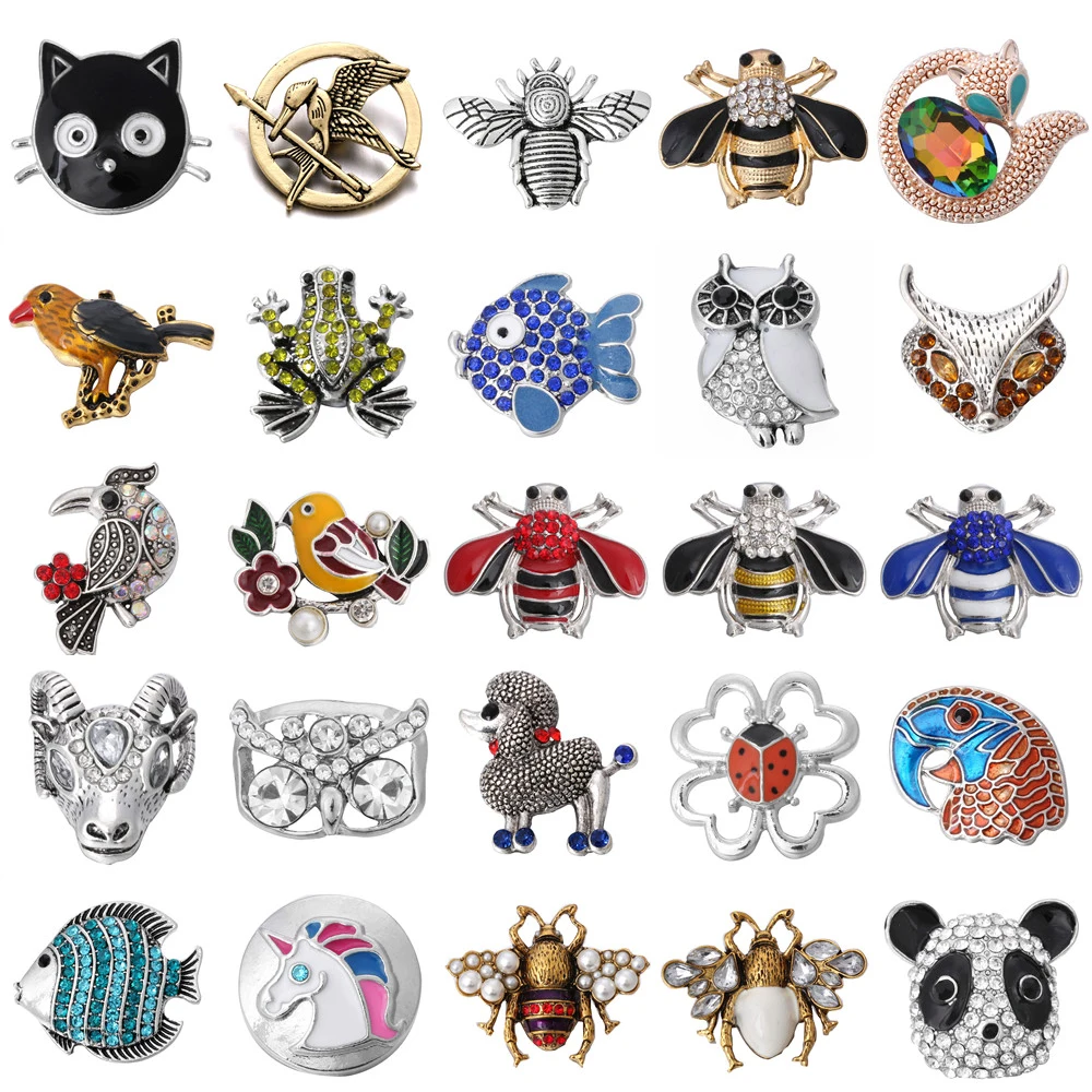 6 шт.лот, металлическая кнопка-застежка со стразами, пчела, птица, ...