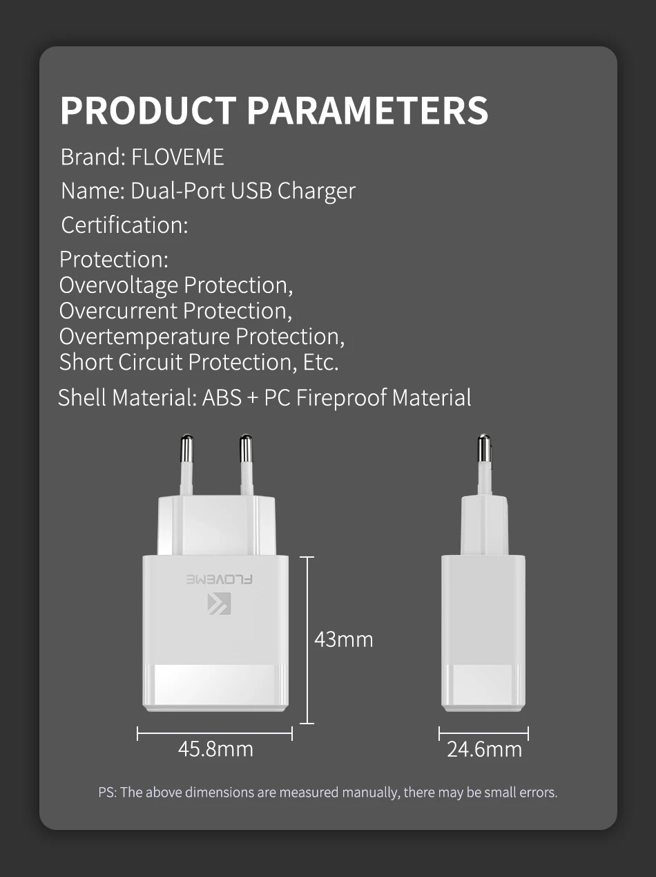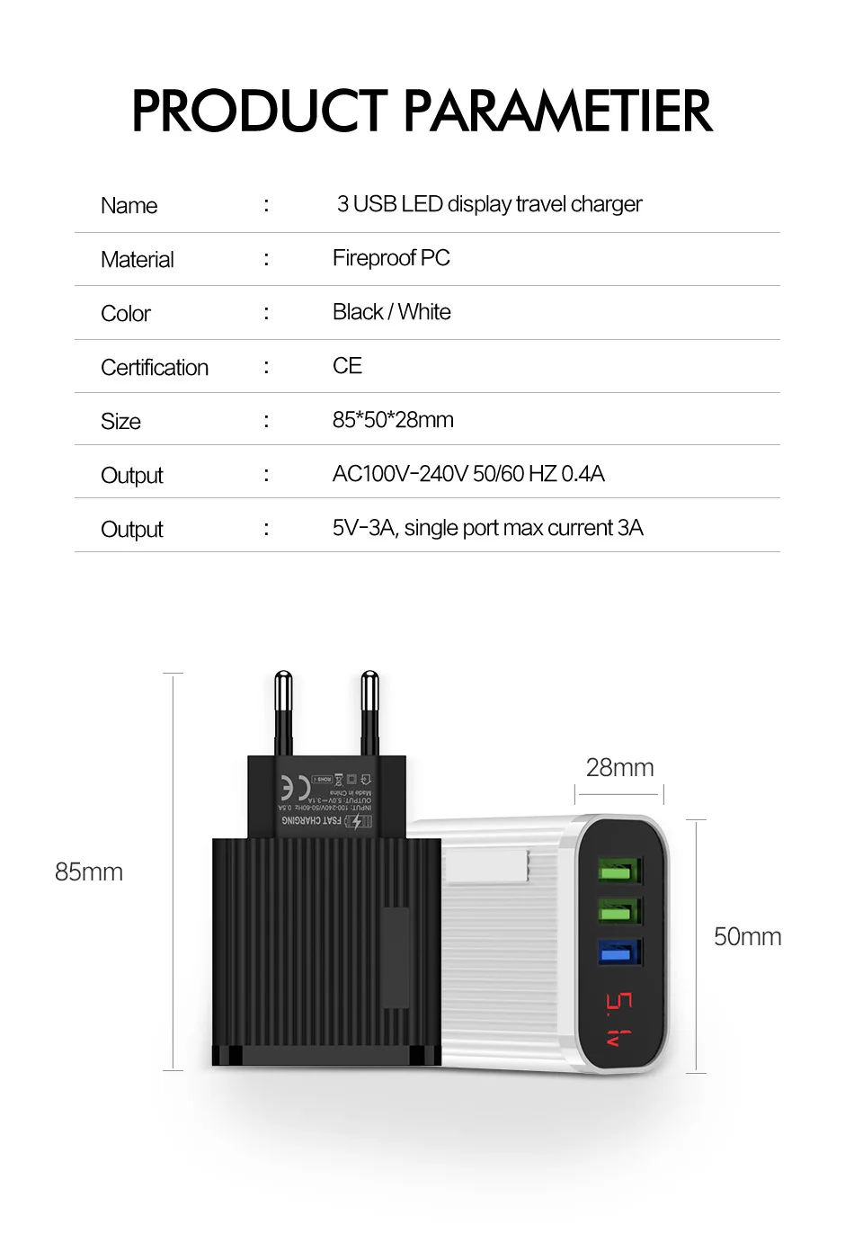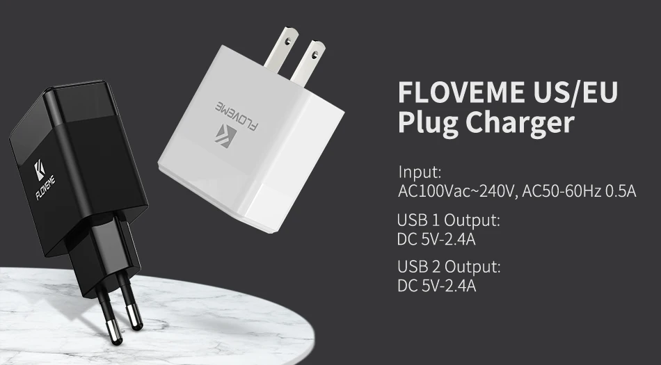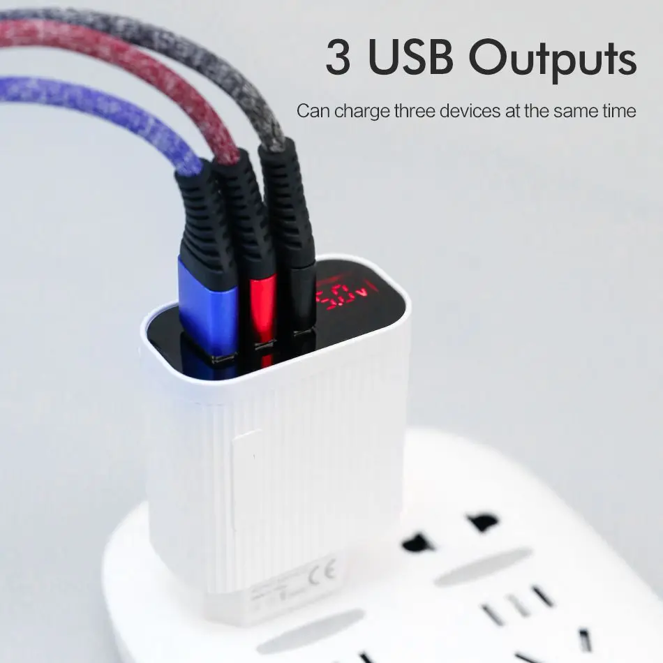 Зарядное устройство FLOVEME сетевое с 3 USB-портами и цифровым дисплеем, 15 Вт