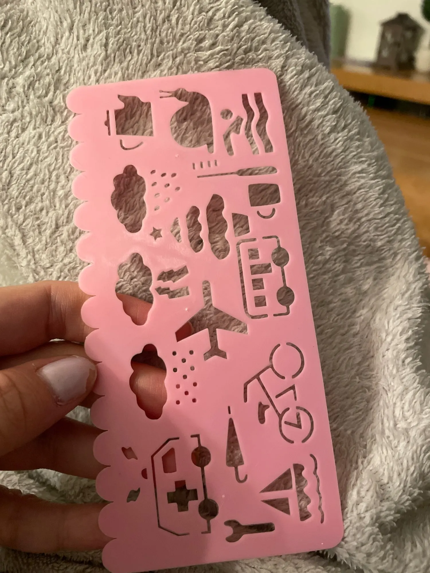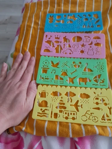 Хрень полнейшая. Рисунки мелкие и карандаш не помещается в нутри. Трафореты кривые и на лист ровно не ложатся. Зря потрачено время. Материал мягкий и гнется. Лутше купить в канц товарах. . Не стоит это покупать. Этот продукт плохого качества.